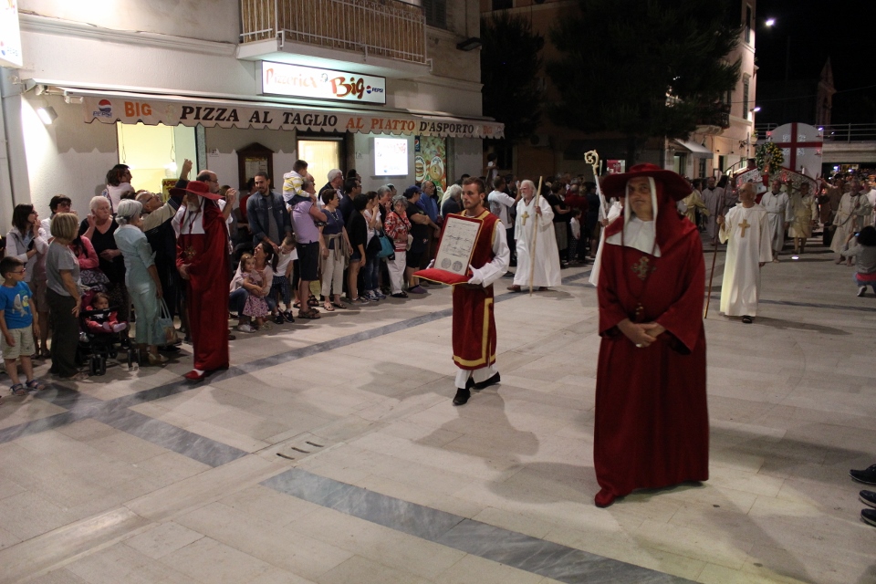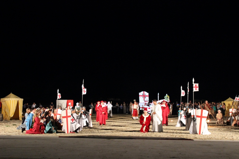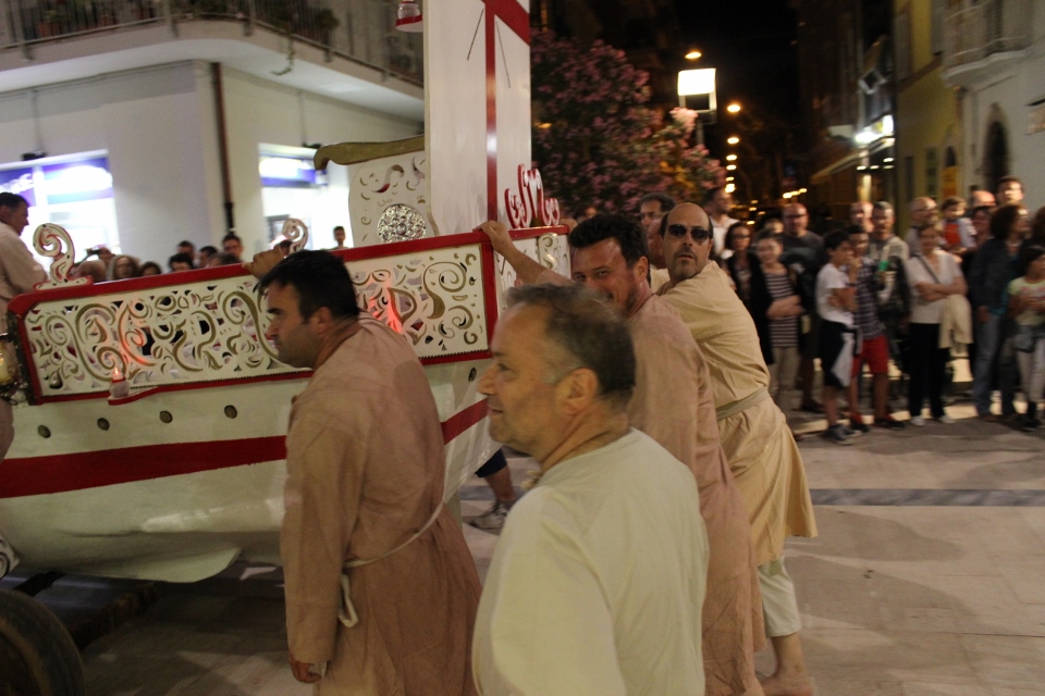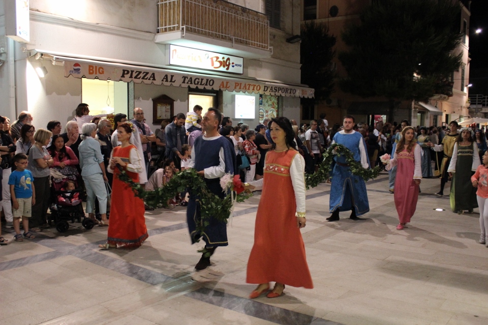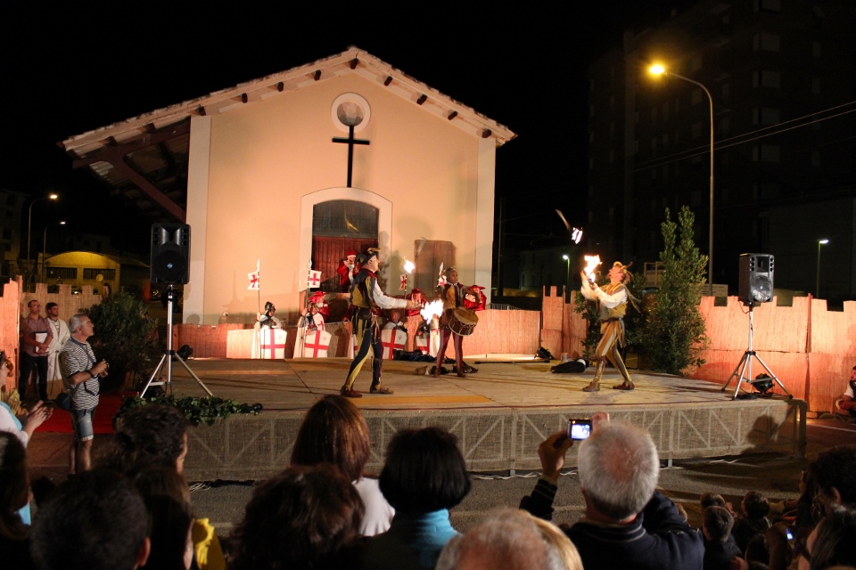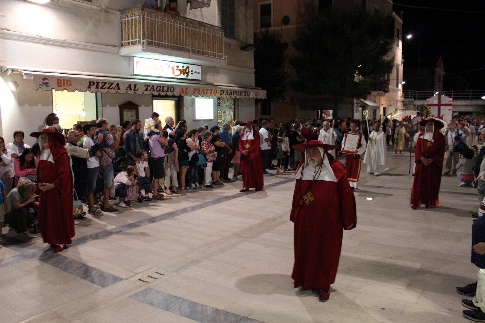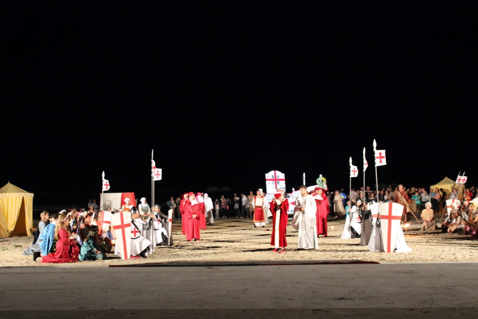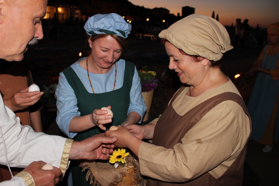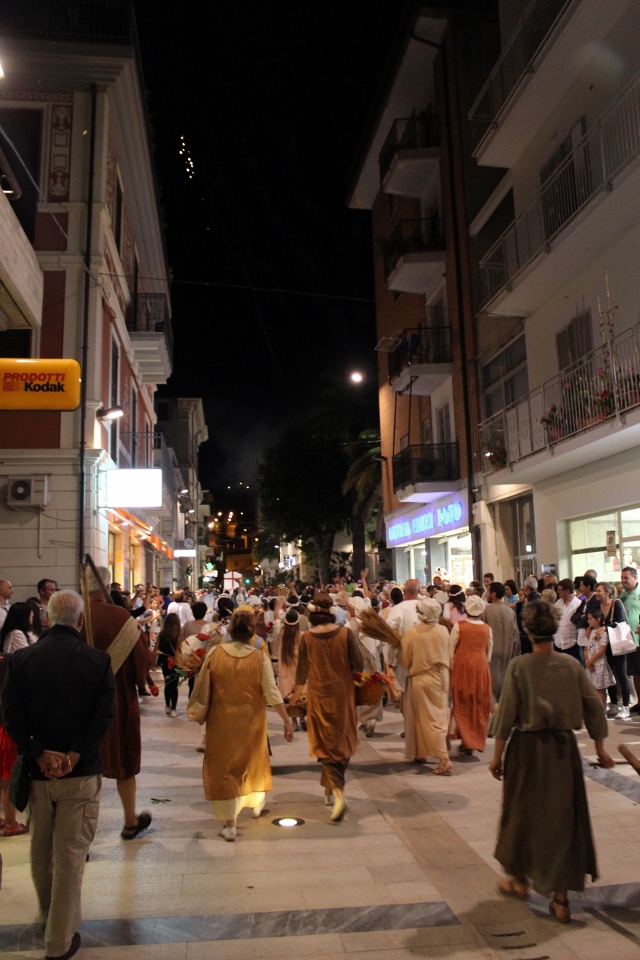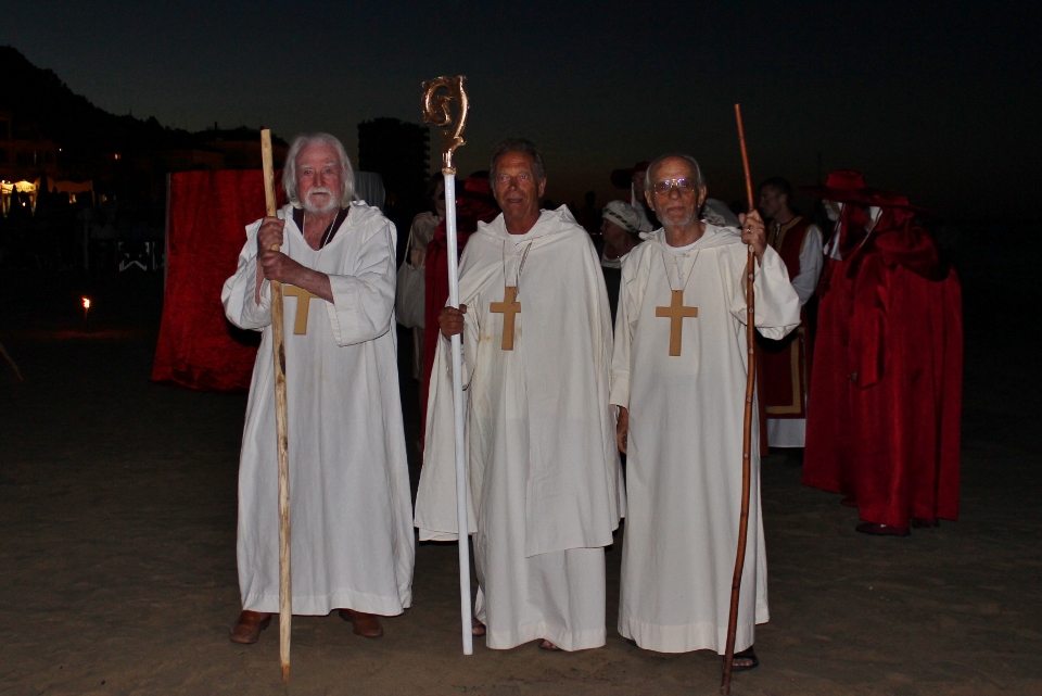 All’imbrunire, già la folla si era radunata sulla spiaggia, poi la pirotecnica “Santa Chiara” ha iniziato a far brillare i fuochi d’artificio per simulare una tempesta e la “cocca” dove si trovava il “papa” ha iniziato ad avvicinarsi fino ad arrivare sulla riva.