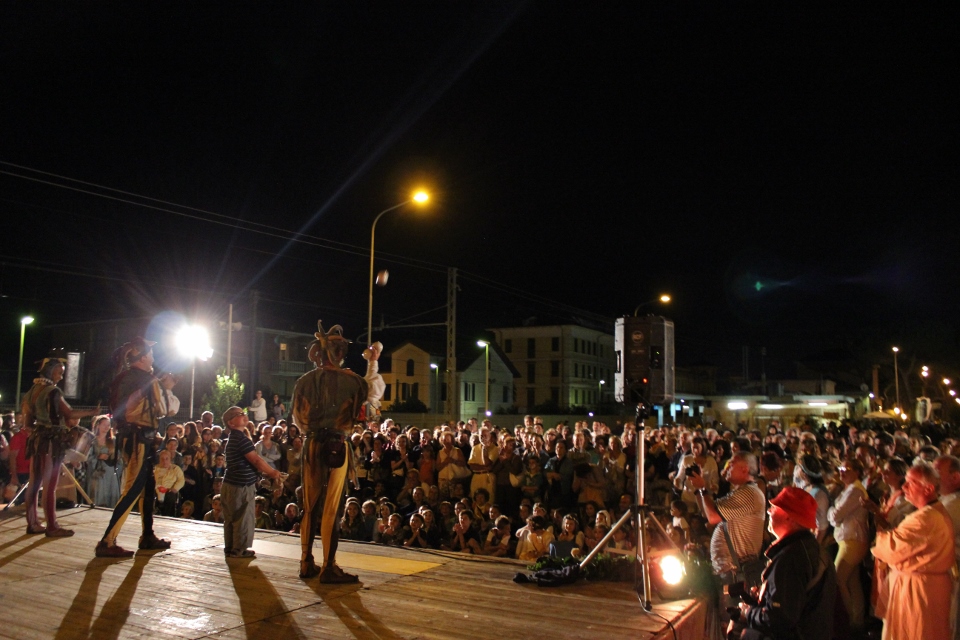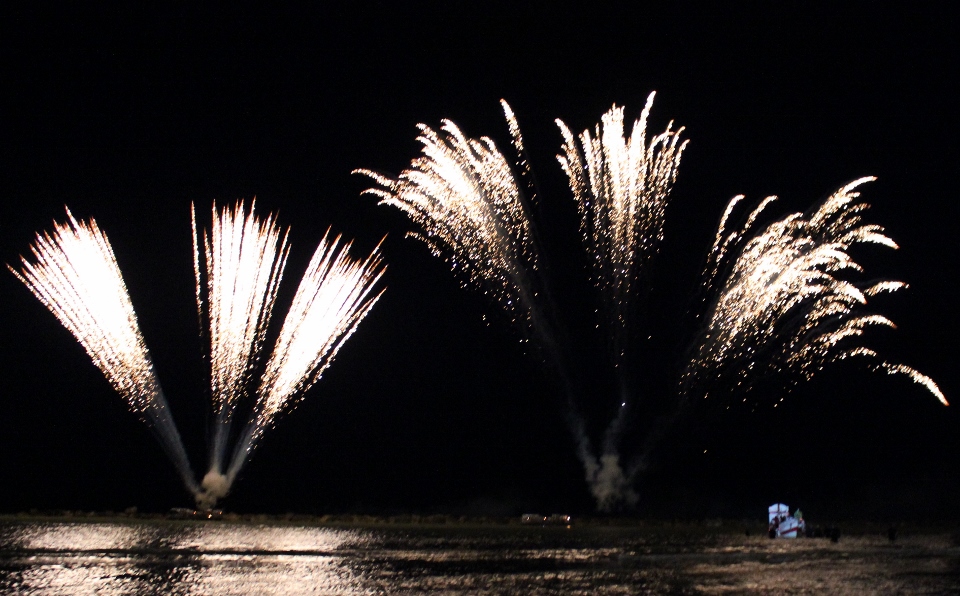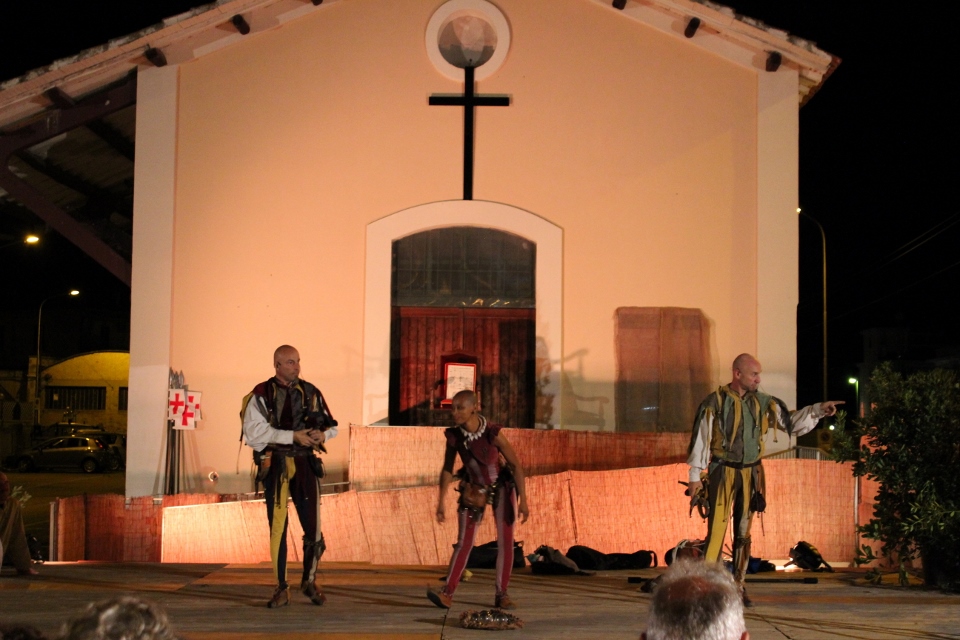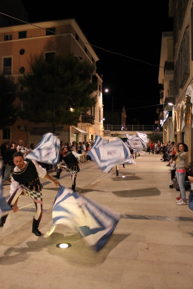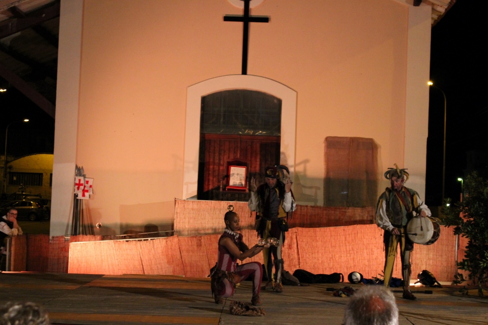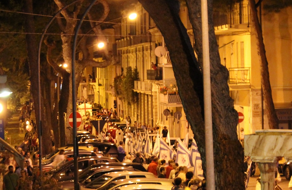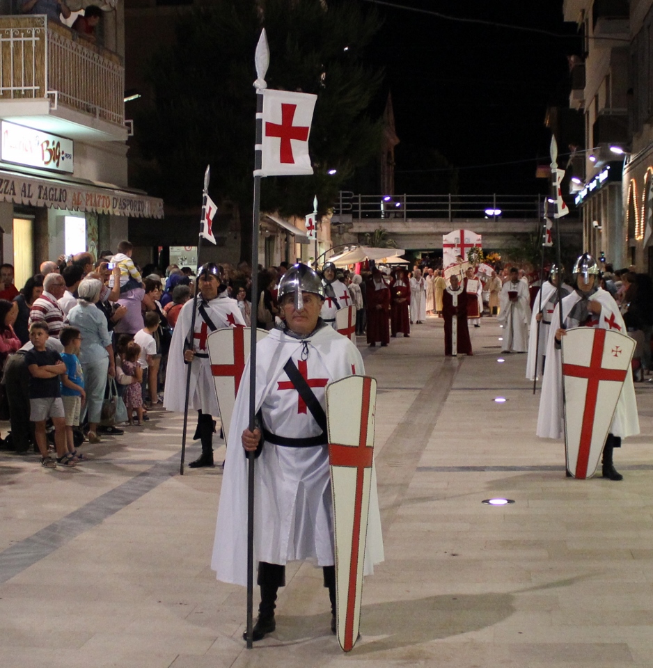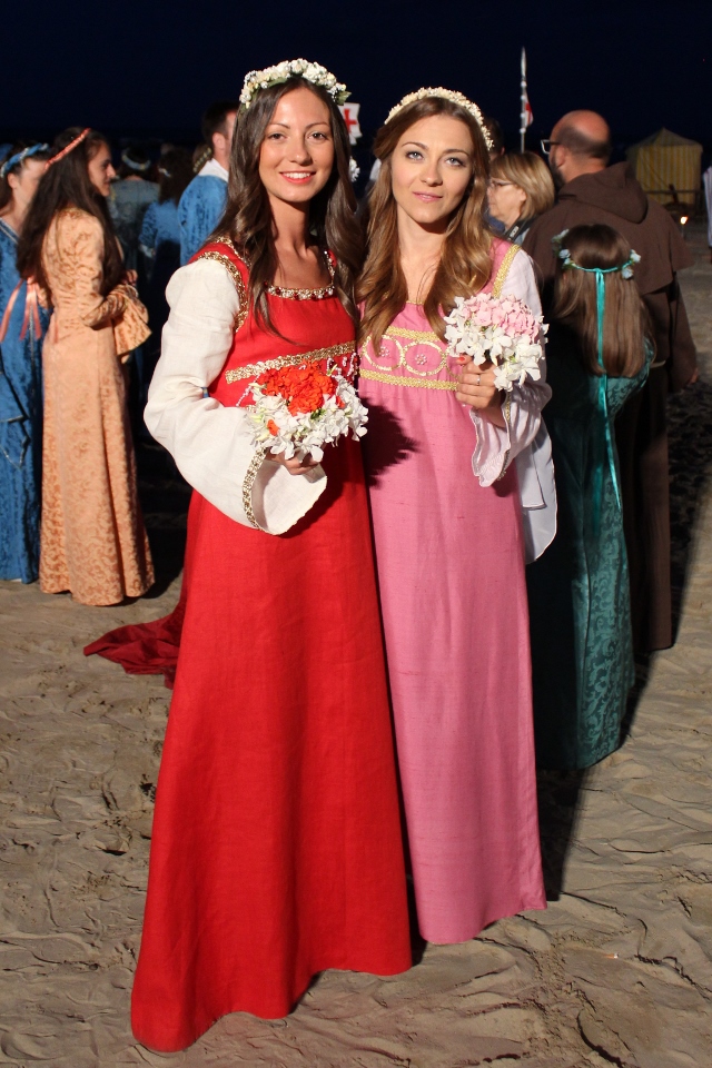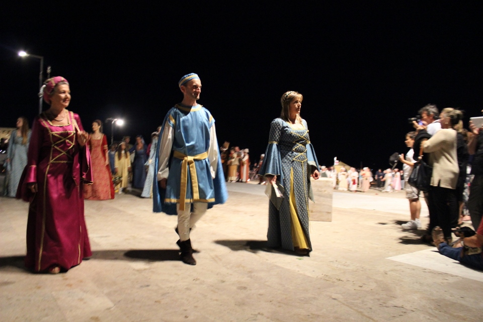 All’imbrunire, già la folla si era radunata sulla spiaggia, poi la pirotecnica “Santa Chiara” ha iniziato a far brillare i fuochi d’artificio per simulare una tempesta e la “cocca” dove si trovava il “papa” ha iniziato ad avvicinarsi fino ad arrivare sulla riva.