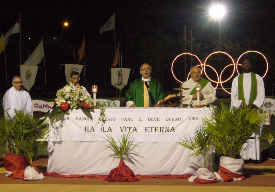 Al termine della sfilata inaugurale, Ser Mons. Carlo Bresciani ha officiato la S. Messa, rivolgendo a tutti ma soprattutto ai piccoli atleti parole di incoraggiamento
