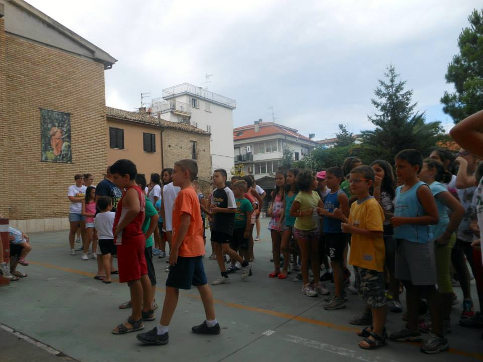 PORTO D’ASCOLI – Piano terra… e gli oratori delle parrocchie si animano in questi pomeriggi estivi. L’oratorio della parrocchia della SS. Annunziata ravviva i vivaci colori alle pareti dove c’è anche una planimetria di una casa, per rendere accogliente il cortile che il lunedì, mercoledì e venerdì dalle 15.00 fino alle 19.00 si riempie di bambini e ragazzi, accolti da un nutrito gruppo di animatori. Il pomeriggio si snoda tra i compiti, le attività di giochi, i laboratori, la preghiera sotto la guida di don Gianni.