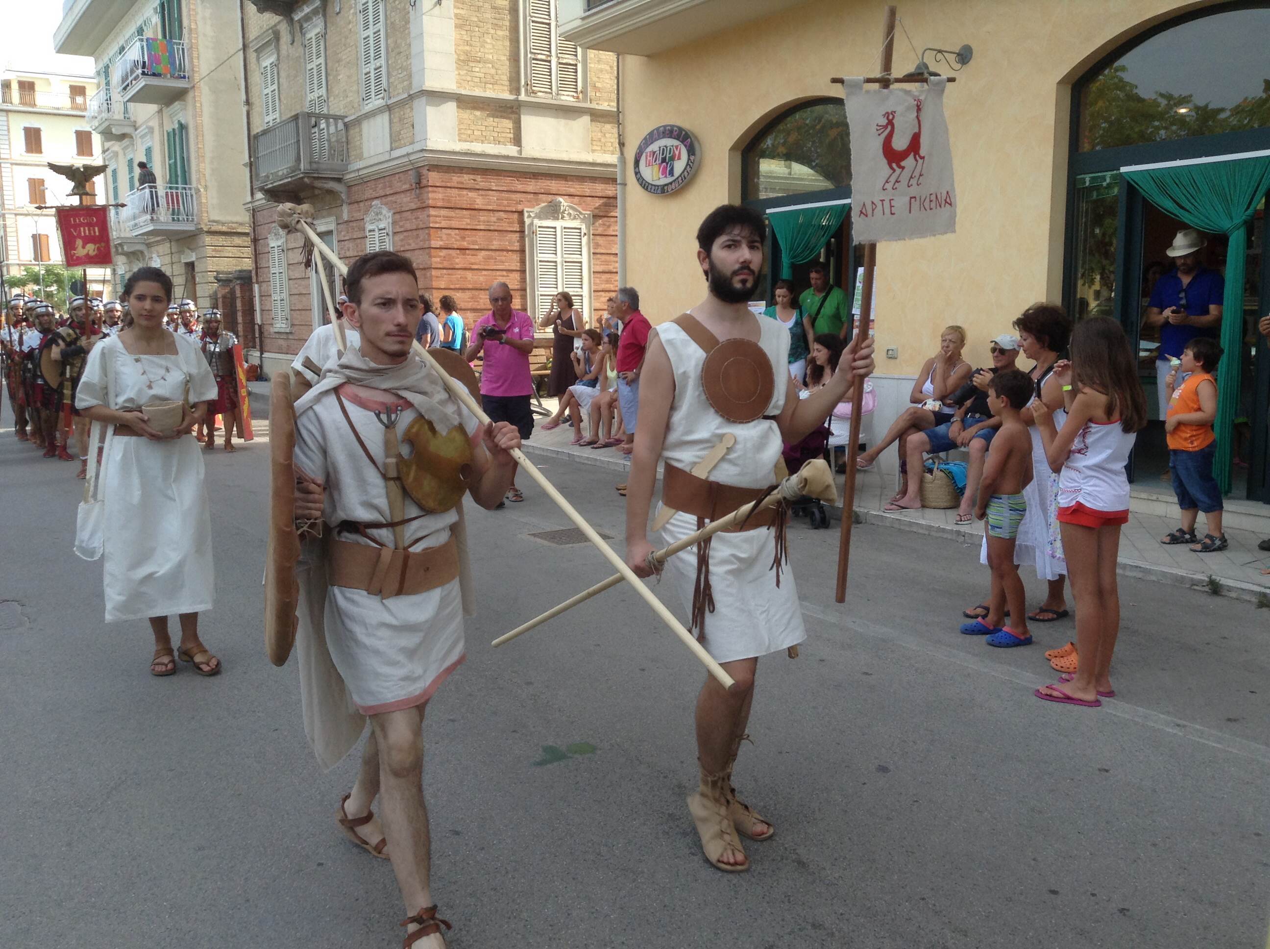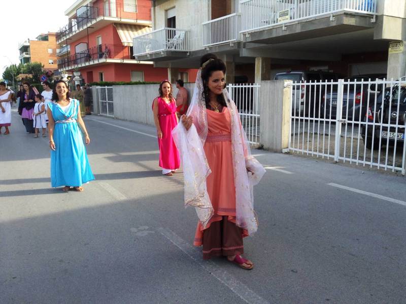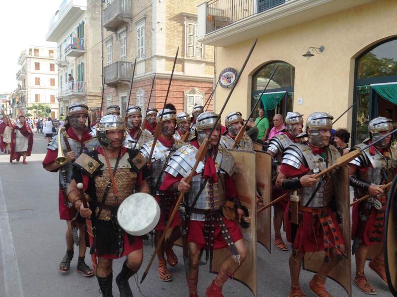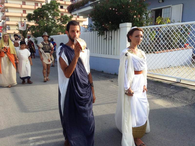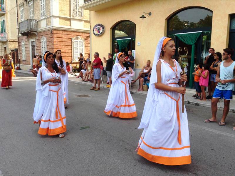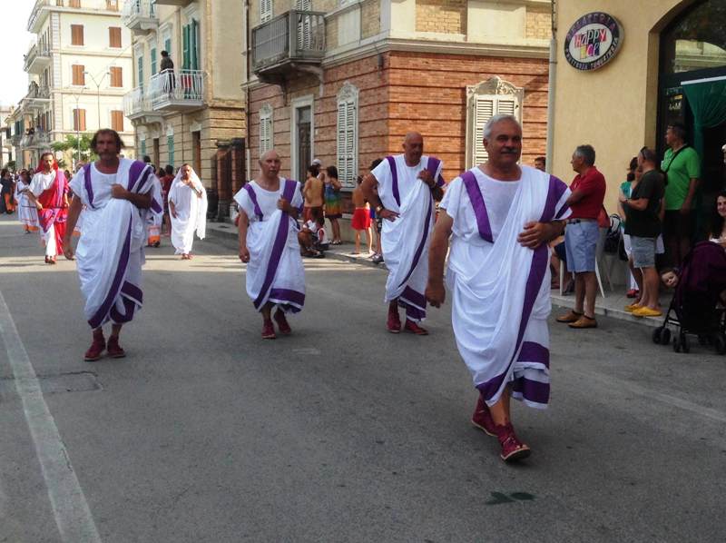 Il corteo si è svolto domenica dalle ore 17.00, partendo dallo spiazzale del rifornimento Beyfin per poi arrivare in piazza della Libertà, ricongiungersi con gli altri rievocandi, proseguire per piazza Possenti e tutto il lungomare fino ad arrivare al parco San Benedetto Martire. Hanno sfilato in circa 400 tra Gruppo Storico Cuprense, Gruppo Storico Romano, Gruppo Storico Alatri, Gruppo Storico Villa Adriana, Gruppo Arte Picena, con sacerdotesse, popolane, senatori, soldati, gladiatori, danzatrici che hanno animato le vie del lungomare destando la curiosità di cittadini e turisti che accorrevano per ammirare da vicino i tanti personaggi.