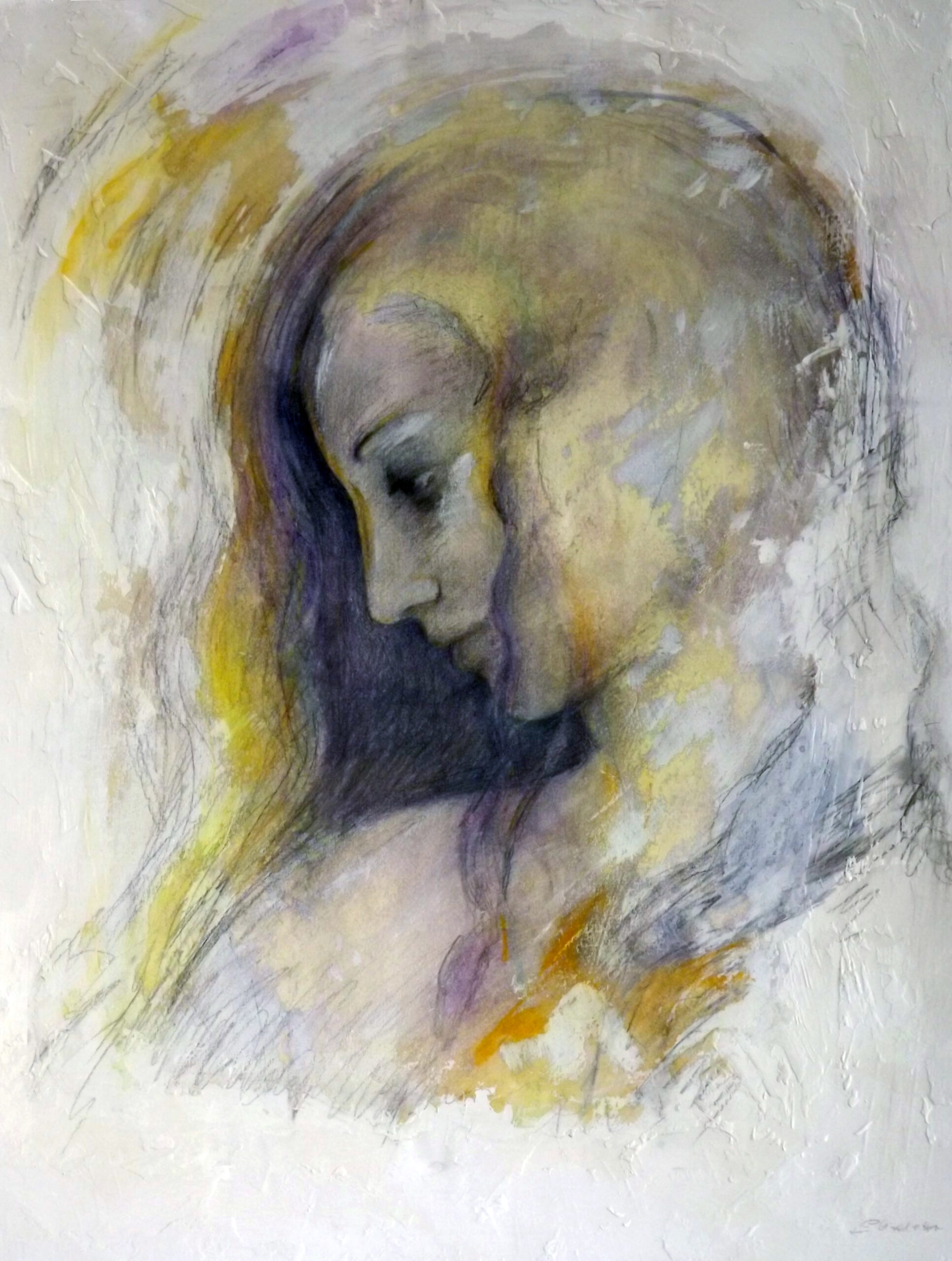 Lavora anche con la luce che rende ancor meglio l’idea di energia vitale che la pittrice vuole esprimere e così un vecchio affresco di S. Giorgio ha la spada che si illumina. Altro tema particolarmente amato è quello dei quattro elementi: aria, acqua, terra, fuoco ed in generale delle forme naturali come l’albero e i fiori. Dopo l’Accademia ha lavorato per molti anni come grafica pubblicitaria e questo modo di concepire le immagini molto moderno ha arricchito anche la sua pittura. Dopo aver svolto attività lavorative diverse, anche non inerenti all’arte, da molti anni insegna nelle scuole, dove cerca in tutti i modi di comunicare ai ragazzi l’entusiasmo e l’amore per l’arte, facendo loro capire che tutti possono essere in grado di esprimersi, non solo i più dotati. Negli ultimi anni si è specializzata particolarmente nel ritratto, sia per piacere personale che su commissione, dove attraverso delle fotografie l’artista ferma, con varie tecniche, visi e sguardi ed, in alcuni casi, introduce i volti in quadri famosi.