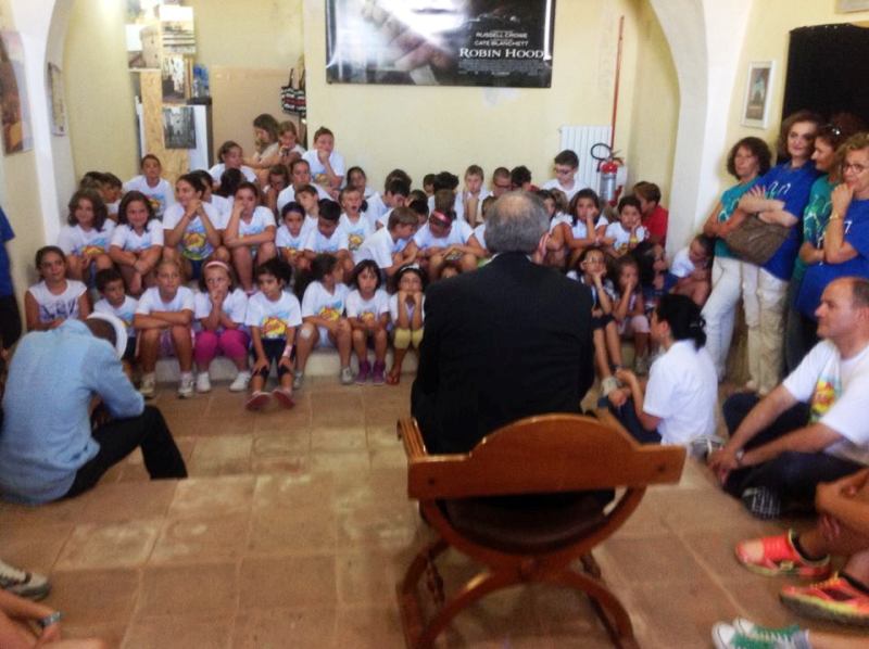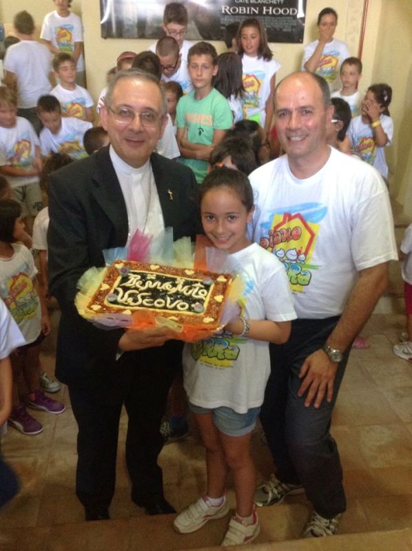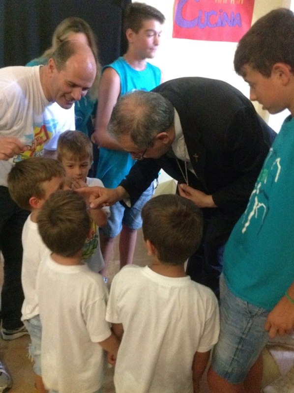 I bambini, riuniti all’interno della struttura dell’ex convento che quest’anno ha accolto l’oratorio, hanno ascoltato con interesse e curiosità quello che il Vescovo Bresciani ha voluto dire loro. Ha ricordato ai bambini che uno degli scopi dell’oratorio è quello di imparare a stare insieme agli altri perché è più bello che stare a casa da soli, davanti alla TV o al Computer e perché quando si fa qualcosa di bello con gli agli altri e per gli altri, lo facciamo anche per noi perché costruiamo meglio la nostra vita. Per stare bene insieme bisogna lavorare insieme, collaborare bambini con animatori e con educatori, aiutare e lasciarsi aiutare per imparare a stare insieme con Gesù e infine diventare la famiglia di Dio.