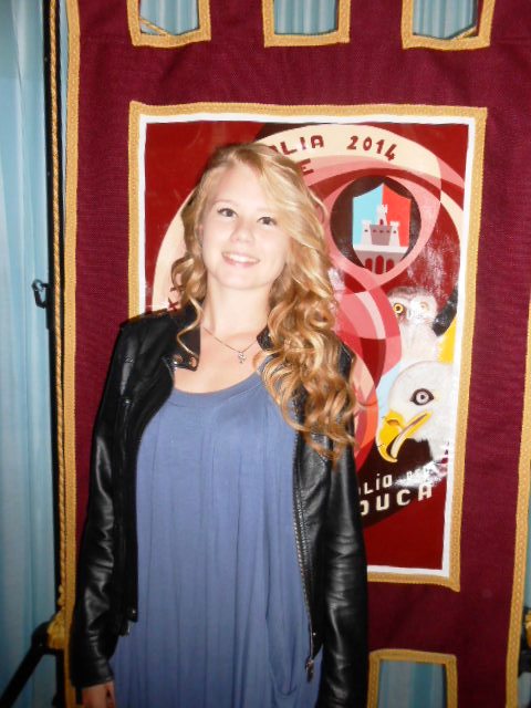 Alla cena era presente anche Forasteria 2014, una giovane ragazza acquavivana: Samanta De Angelis, 18 anni quasi compiuti; ha già vestito i panni della principessa Forasteria in una delle edizioni del Palio dei Bambini e quindi un po’ di dimestichezza, con questo personaggio, non le manca. Samanta, studentessa del Liceo Linguistico A. Capriotti, ha partecipato attivamente alle edizioni passate della rievocazione prendendo parte ai giochi, e fa parte della scuola di danza di Maria Luigia Neroni. Il vestito che indosserà sarà quello della scorsa edizione e Paride Traini vestirà di nuovo i panni del principe Rinaldo.