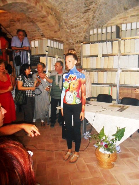 Riuscito l’allestimento della mostra inserita in un passaggio coperto del centro storico. Lo spazio, già suggestivo di per sé, raccoglie tutti gli elaborati del concorso restituendo il colore e l’allegria dei ragazzi che con occhi nuovi hanno saputo trasmettere “altre” possibilità di lettura per Acquaviva Picena. Alla mostra ha dato lustro, con la sua presenza, anche Cesare D’Antonio, scultore e pittore marchigiano, diplomato al Liceo Artistico di Porto San Giorgio nel 1981 del quale sono state esposte alcune opere.