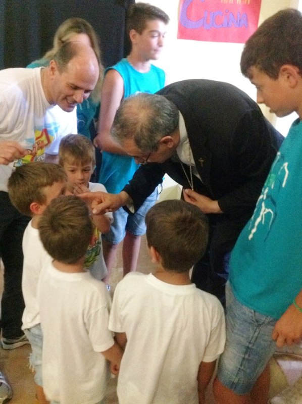 ACQUAVIVA PICENA – Martedì, 29 luglio, Piano Terra è arrivato a destinazione con la festa finale che si è svolta presso l’ex convento delle suore. Don Alfredo ha iniziato con la celebrazione della Santa Messa a cui è seguita la visione di un video, con le immagini dei volti felici dei ragazzi e dei bambini durante le attività e i giochi dell’oratorio, ed è terminata con le esibizioni dei bambini in canti e balli, imparati durante lo svolgimento di Piano Terra grazie all’impegno degli animatori e degli educatori. Durante l’omelia, don Alfredo ha preso lo spunto dal Vangelo di Marta e Maria per parlare di casa, accoglienza e impegno. Ha ricordato l’accoglienza di Filippo Gaetani, presidente di Laboratorio Terraviva, l’associazione che ha messo a disposizione la propria sede per l’oratorio:”Filippo – ha sottolineato il parroco – si è comportato come Marta si è comportata con Gesù, non solo ci ha fatto entrare ma è stato con noi. Ospitare vuol dire fare in modo che l’ospite si senta a casa sua e condivida le mie cose. Anche noi abbiamo accolto qualcuno: Henry e Princewill, due degli africani ospitati qui ad Acquaviva, con cui abbiamo condiviso momenti di gioco e di lavoro“. Durante i pomeriggi passati insieme i bambini hanno studiato, lavorato, giocato e pregato insieme, hanno “scelto la parte migliore” della vita, come Gesù dice di Maria, la sorella di Marta, nel vangelo della celebrazione (Lc 10, 42); il parroco ha quindi invitato tutti a vivere la vita pensando non solo a se stessi, ma condividendo un sorriso, un gioco, una parola, tendendo la mano a chi ci chiede un aiuto, anche se piccolo, perché queste sono le cose che contano perché sono quelle che rimarranno.