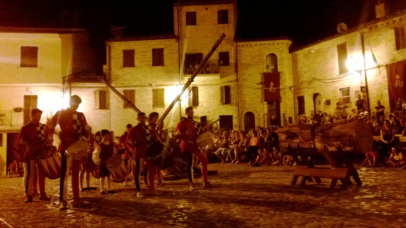 Venerdì primo agosto è stata la serata del Matrimonio e del Palio del Duca la famosa contesa tra i due rioni storici di Acquaviva Picena: Aquila e Civetta. Dopo il piace piace, volo volo che ha suggellato l’unione di Forasteria con Rinaldo, si sono svolte le quattro gare previste: la corsa con i sacchi, la corsa con le paiarole, la gara del segone e il tiro alla fune; ad aggiudicarsi il drappo 2014 è stato il rione Civetta. La serata è stata allietata dall’esibizione dei tamburini del Palio dei Castelli di San Severino Marche.