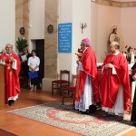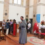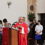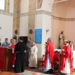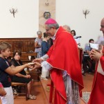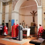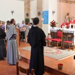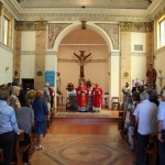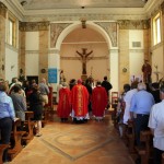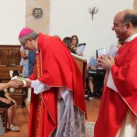 Padre Mario accogliendo il Vescovo Carlo Bresciani in Chiesa ha dichiarato: “Eccellenza, le porgo il benvenuto in questa comunità parrocchiale che oggi festeggia il suo patrono; lei chiaramente è il pastore di tutta la diocesi, quindi questa comunità parrocchiale vede in lei i segni dell’unità della chiesa e proprio la sua presenza è per tutti noi motivo di gioia e gratitudine.
