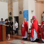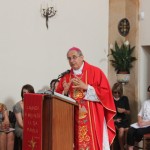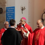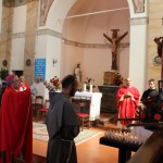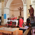 Il nostro Vescovo Carlo durante l’omelia ha affermato: “Forse non abbiamo fatto mente locale adeguatamente su un aspetto di ciò che stiamo celebrando, noi stiamo celebrando la festa di un condannato a morte, quindi di un perdente, di uno che secondo la logica del mondo è un perdente, perché condannato a morte ed ucciso, quindi, non la festa di un dominatore, non la festa di uno che ha avuto successo, non la festa di qualcuno a cui tutti han battuto le mani, ma uno che secondo la tradizione è morto bruciato, e allora questo ci porta a riflettere, ma perché?