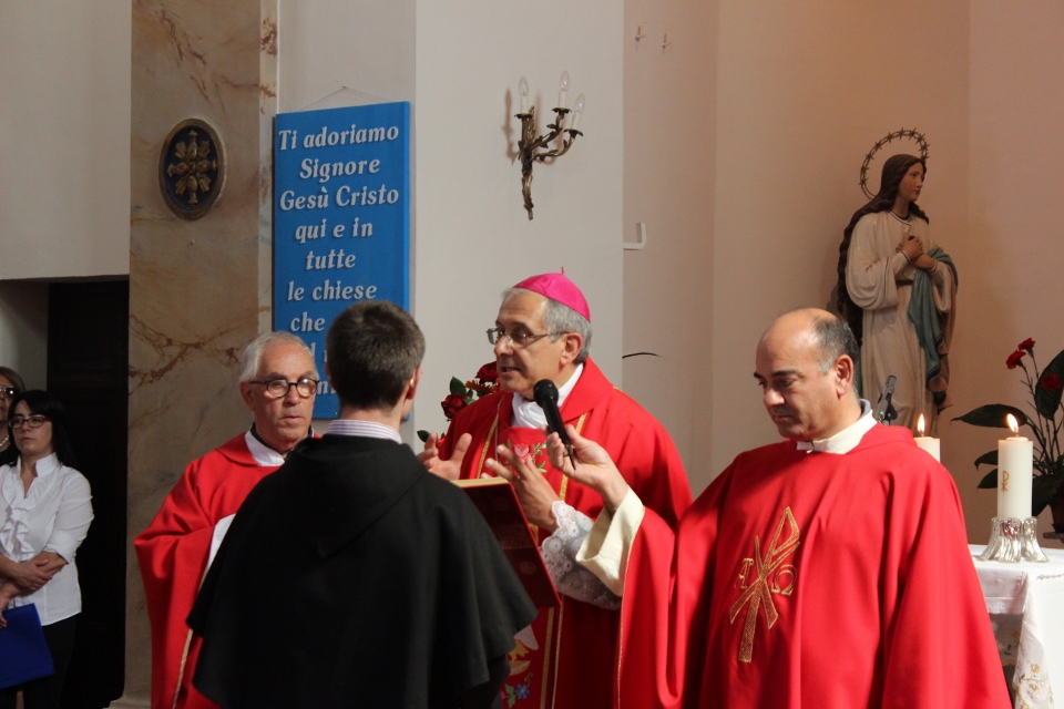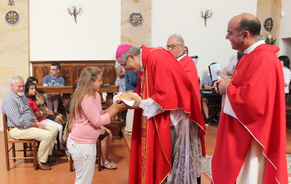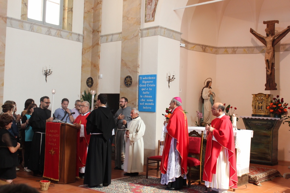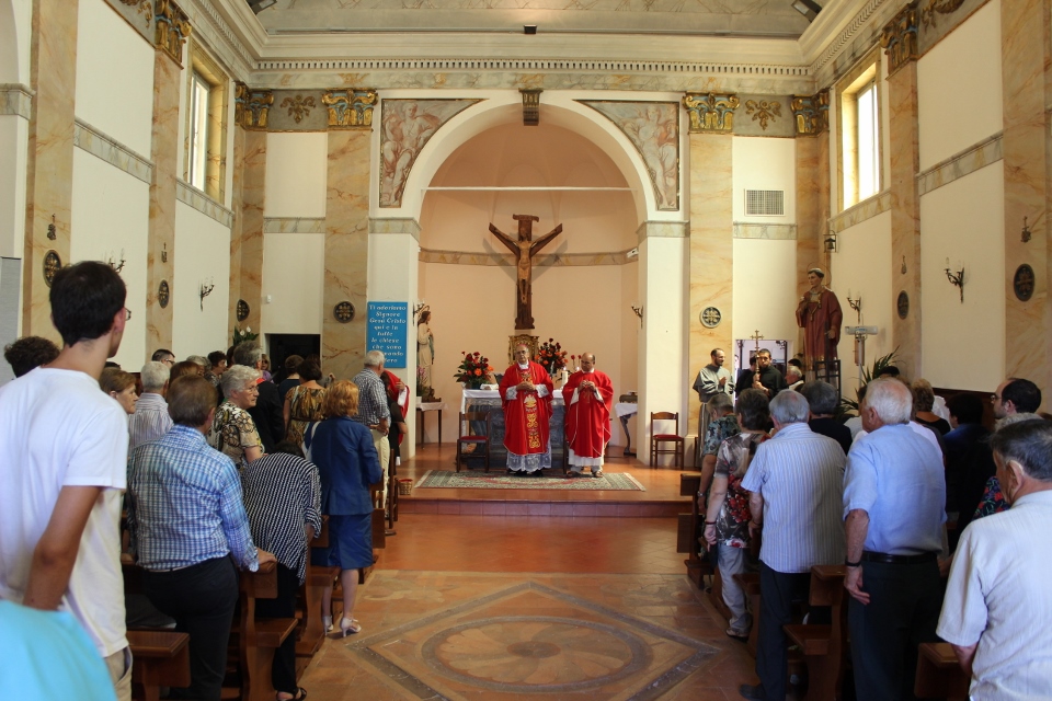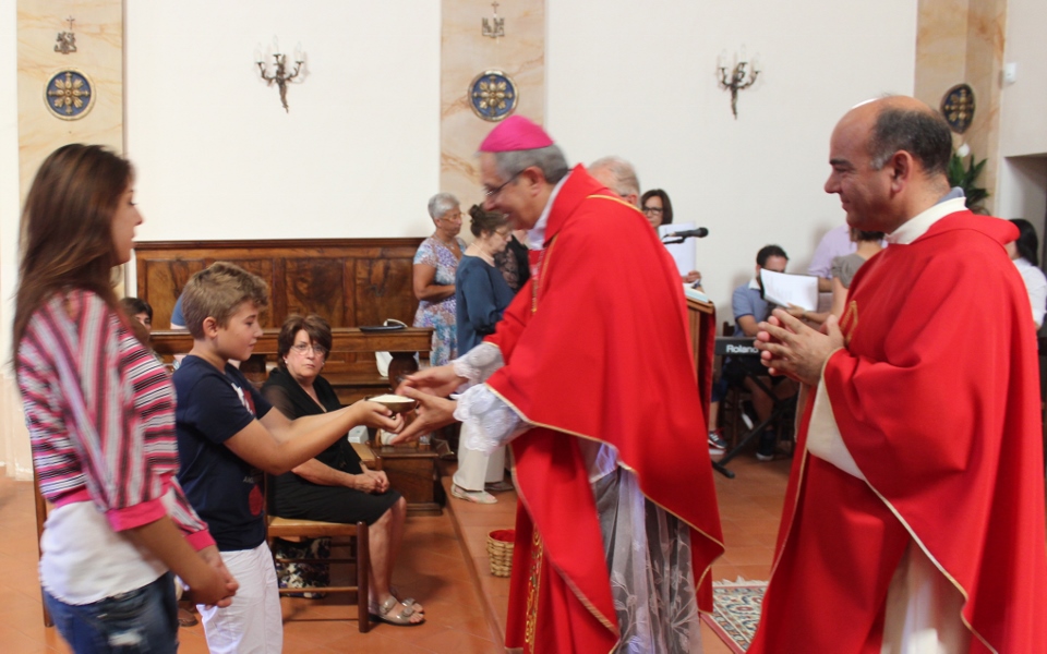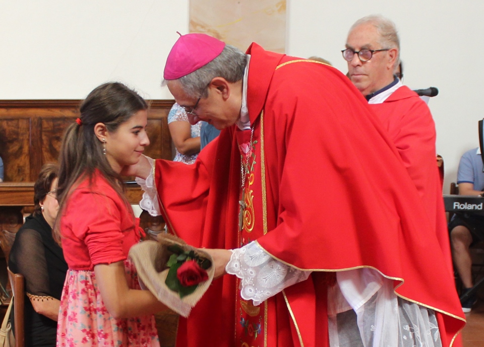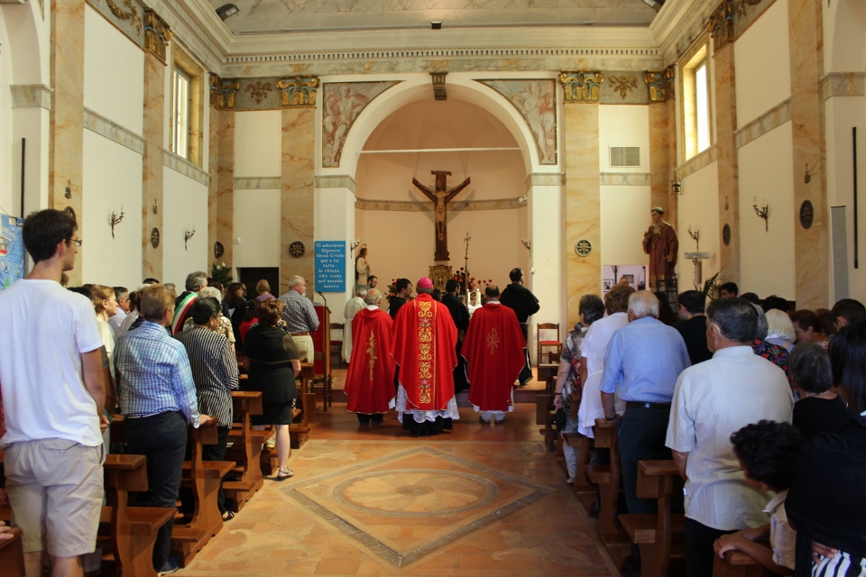 Padre Mario accogliendo il Vescovo Carlo Bresciani in Chiesa ha dichiarato: “Eccellenza, le porgo il benvenuto in questa comunità parrocchiale che oggi festeggia il suo patrono; lei chiaramente è il pastore di tutta la diocesi, quindi questa comunità parrocchiale vede in lei i segni dell’unità della chiesa e proprio la sua presenza è per tutti noi motivo di gioia e gratitudine.