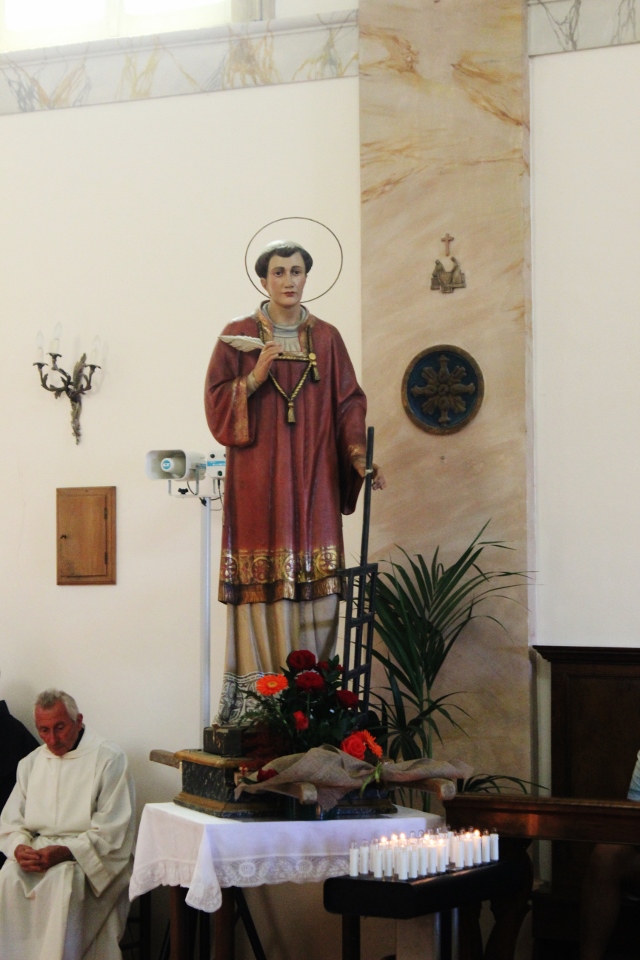 Questo ci dice S. Lorenzo, ha preferito morire piuttosto che reagire con violenza, ma ci ha insegnato che la pace non la si costruisce con la forza, c’è una debolezza perché è vero in certi aspetti in S. Lorenzo c’è una debolezza, dicevo è il perdente, ma per altri aspetti in questa debolezza c’è tutta la forza del costruire la speranza dentro questo mondo, del costruire la presenza di Dio dentro questo mondo, ed è per questo che noi siamo grati a S. Lorenzo, come tutti gli altri martiri d’altra parte, ma siamo grati perché ci aiuta a capire queste cose che sono le cose più importanti, è vero allora quello che dice il vangelo che se il chicco di grano caduto in terra non muore rimane solo, se S. Lorenzo avesse accettato di piegare il capo seguendo quello che volevano imporgli , S. Lorenzo sarebbe rimasto solo.