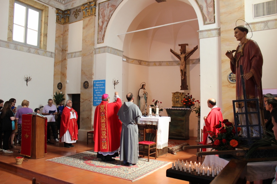 Il nostro Vescovo Carlo durante l’omelia ha affermato: “Forse non abbiamo fatto mente locale adeguatamente su un aspetto di ciò che stiamo celebrando, noi stiamo celebrando la festa di un condannato a morte, quindi di un perdente, di uno che secondo la logica del mondo è un perdente, perché condannato a morte ed ucciso, quindi, non la festa di un dominatore, non la festa di uno che ha avuto successo, non la festa di qualcuno a cui tutti han battuto le mani, ma uno che secondo la tradizione è morto bruciato, e allora questo ci porta a riflettere, ma perché?