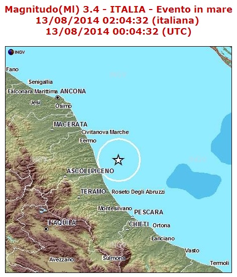 RIVIERA – Avvertito alle ore 2.04 una scossa di terremoto lungo la Riviera Adriatica e registrato dalla Rete Sismica Nazionale dell’INGV in mare di potenza 3.4.