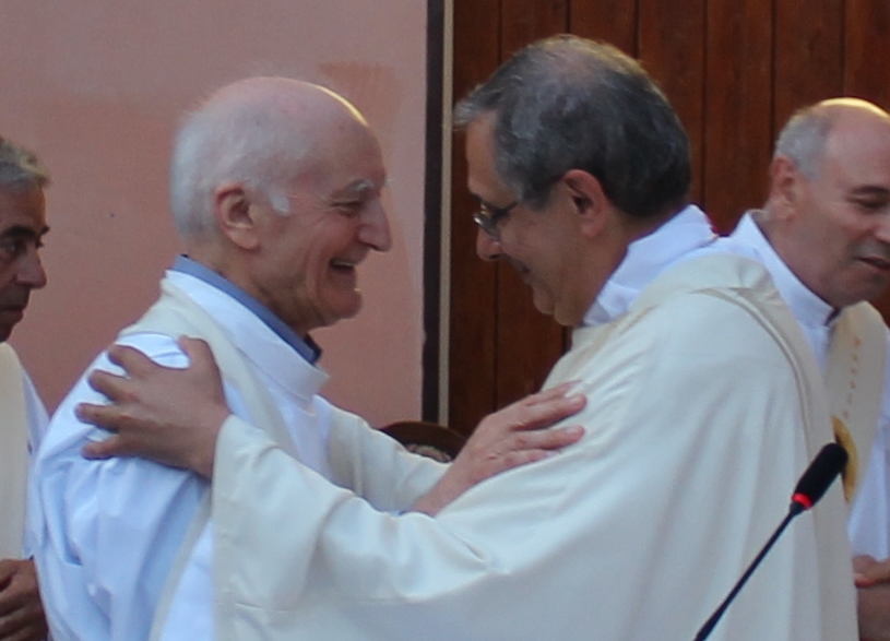 Il vangelo ci dice che questo sacerdozio è il segno dell’amore di Dio, infatti, dice il vangelo di Matteo che abbiamo letto, che Gesù sentì compassione, e da questa compassione invita a pregare, pregate il Signore della messe perché mandi operai nella sua messe, sono sicuro di interpretare, anche se non ne ho parlato direttamente con lui, ma son sicuro di interpretare l’intenzione di Don Gianni, nel chiedere questa preghiera insieme con il Signore, pregate il Signore della messe perché mandi operai nella sua messe, che viene dalla compassione di Gesù per il popolo, che la compassione non è la commiserazione, commiserare ha qualcosa di negativo, compassione è invece sentire dentro di sé il bisogno dell’altro, e cercare di dare una risposta al bisogno dell’altro, Gesù sente dentro di sé il nostro bisogno, e viene a dare una risposta al nostro bisogno, e dice pregate perché ce ne siano tanti che danno risposta a questo bisogno dell’uomo, che siano tanti che consacrano la loro vita a questo grande ministero, questo grande servizio, che è uno dei più grandi per essere vicino a questa povertà della gente, poveri tra i poveri, ma per portare questa parola del Signore. Ecco se siamo qui questa sera a dire grazie al Signore, è perché noi abbiamo colto qualcosa di questo aspetto che ho detto, abbiamo colto questa grandezza del dono di Dio, e l’abbiamo colta anche attraverso Don Gianni, che nei suoi sessant’anni di presenza nelle varie parrocchie, nei vari ministeri che ha esercitato in questa diocesi, l’ha fatto percepire e l’ha donato con abbondanza, per questo dicevo, diciamo grazie e per questo preghiamo, preghiamo per lui, preghiamo per la nostra chiesa, preghiamo perché il Signore lo accompagni, continui ad accompagnarlo, perché il Signore continui a essere generoso di benedizioni e dia a Don Gianni la grazia di gustare frutti abbondanti del suo ministero, perché è anche bello questo, è bello per noi sacerdoti vedere, ci aiuta e ci fa anche bene vedere le risposte positive dei fedeli a quello che noi cerchiamo di dare con tutta l’umiltà, abbiamo bisogno anche di questo, perché questo è un sostenerci a vicenda, è un aiutarci a vicenda da fratelli davanti al Signore, insieme con il Signore, da fratelli per camminare in questa maniera, allora caro don Gianni, mentre anche io mi unisco molto volentieri in questo ringraziamento a te e son sicuro di farmi voce di tutta la diocesi di San Benedetto nel dirti grazie per questa tua presenza in tanti anni, mentre dico a te grazie, prego per tutti noi, carissimi accogliamo questo invito del Signore, accogliamo questo invito a pregare perchè abbiamo bisogno di sacerdoti, perché i sacerdoti servono, pregate anche voi per la santità dei vostri sacerdoti, perché nella preghiera noi ci crediamo, dalla preghiera possiamo ottenere dal Signore quello che veramente ci serve per il nostro cammino di fede, e quindi caro don Gianni il Signore ti benedica, e nella nostra povertà ti ripetiamo grazie perchè sei sacerdote in mezzo a noi e per noi.