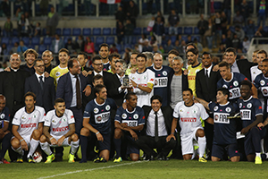 Non è stata una partita di beneficenza come se ne vedono tante altre. Quella disputata ieri sera allo Stadio Olimpico di Roma è stata l’ennesima dimostrazione della bontà del cammino interreligioso che il Papa sta percorrendo con vigore in nome di un bene comune irrinunciabile e urgente: la pace. Quasi una riproposizione, almeno nei gesti, della storica invocazione per la pace in Terrasanta fortemente voluta da Francesco nel mese di giugno e culminata con l’ulivo piantato insieme a Shimon Peres, Mahmoud Abbas e Bartolomeo nei Giardini Vaticani a conclusione dell’incontro. Questa volta, seguendo il testo di una sceneggiatura capovolta che mantiene il ritmo di un dialogo ininterrotto, l’ulivo donato dal Santo Padre è stato piantato in apertura della partita come simbolico calcio d’inizio. Poi la festa sul campo è stata la protagonista.
