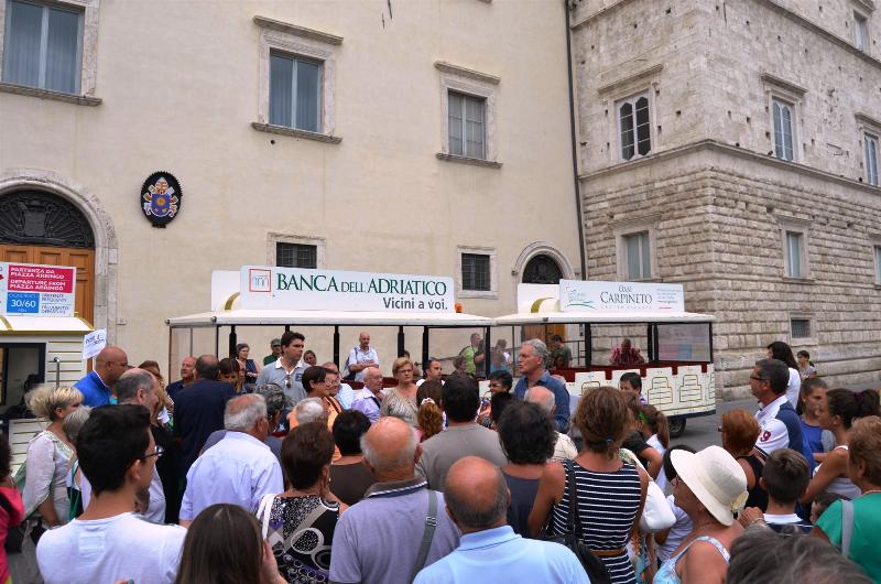 Come consuetudine i numerosi turisti, in vacanza in hotel e strutture ricettive della Riviera, hanno raggiunto il capoluogo piceno, prima visitando la Cartiera Papale, dove ha avuto luogo anche una ricca di degustazione di prodotti tipici. Quindi, accompagnati dalle guide, gli escursionisti hanno proseguito la visita nel centro storico alla scoperta dei luoghi più conosciuti ed amati della città delle Cento Torri a bordo del trenino ‘Ascoli Explorer’. Il Presidente della Provincia Piero Celani ha voluto personalmente salutare e dare il benvenuto al numeroso gruppo che comprendeva anche turisti stranieri, in P.zza Arringo illustrando agli ospiti le caratteristiche e le straordinarie risorse di un territorio che vuole far sentire il turista no come un ospite ma come un vero e proprio invitato.