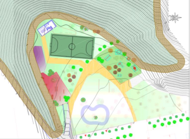 Il progetto prevede la realizzazione di percorsi pedonali creati in massetto in calcestruzzo e finitura superficiale al quarzo e di un campo di calcio a cinque. Saranno realizzati spazi a verde con piantumazione di essenze arboree ed arbustive e predisposti spazi dedicati ai più piccoli con attrezzature ludiche ed aree con sedute e panche destinate al relax ed alla conversazione.