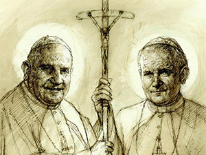 Pastore eterno, risorto dalla morte e asceso al cielo, il Signore Gesù non abbandona il suo gregge, ma lo custodisce e lo conduce attraverso i tempi sotto la costante guida di coloro che egli stesso ha costituito suoi vicari. Tra costoro, per conformazione al Pastore dei pastori e per amore genuino alle pecorelle del Suo gregge, risplendono i Santi papi Giovanni XXIII e Giovanni Paolo II.