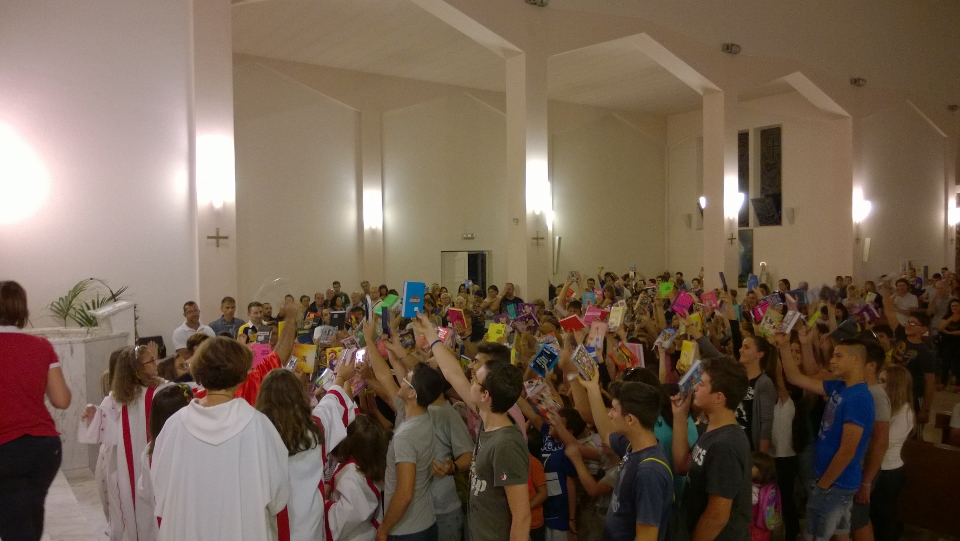 La messa con la benedizione dei diari scolastici è stata partecipata anche da studenti delle scuole medie e di primo e secondo superiore, oltre che dagli educatori e dei catechisti.