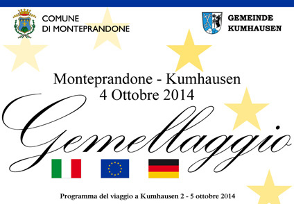 MONTEPRANDONE – Dopo anni di contatti volti alla reciproca conoscenza, le municipalità di Monteprandone e di Kumhausen (Germania) hanno concordato di formalizzare l’amicizia e la profonda reciproca stima con la firma del Giuramento di fraternità europea.