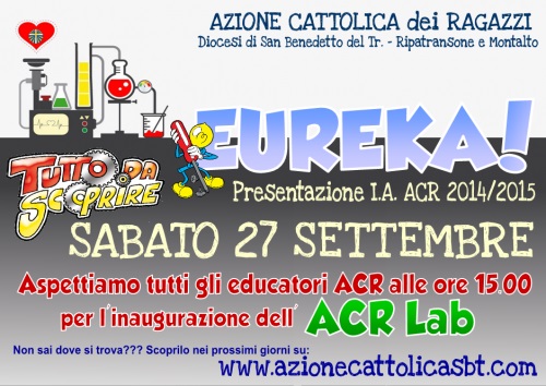 DIOCESI – Pubblichiamo la lettera firmata dai responsabili ACR Lorenzo Felici, Simone Gasperi e dall’Assistente Spirituale Don Gian Luca Rosati: “Vi ricordiamo l’appuntamento con la presentazione dell’Iniziativa Annuale dell’ACR 2014/2015 che si terrà presso la parrocchia Santa Maria della Marina di San Benedetto del Tronto dalle ore 15.00 alle ore 19.30 di Sabato 27 settembre.
