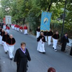 Forse il seme di tutto ciò iniziò nel lontano Giubileo del 2000, quando il Beato Giovanni Paolo II volle radunare a San Pietro tutti i gruppi, proprio per confermare l’appartenenza ad una unica Chiesa, quella di San Pietro. Ad ogni buon conto, tralasciando le riflessioni e le considerazioni, un ringraziamento doveroso va a Don Paolo Civardi, eccellente predicatore, attento filologo, che ha sviscerato il Vangelo e delineato la figura di Maria, in particolare come Madre Addolorata, durante il doloroso calvario di Gesù. A concelebrare la Messa c’era il patron di tutta l’iniziativa, ossia Don Giorgio Carini, il parroco-architetto di San Giovanni Battista al paese alto di Grottammare e organizzatore del raduno e della processione, assieme a Don Paolo Civardi, predicatore del Settenario e a Mons. Giovanni Flammini, parroco di San Pio V, sempre attento e rispettoso dei patroni cittadini. Il risultato di questo incontro è stata una processione eccezionale, piena di colori, dal rosso, al celeste, al nero e al bianco e la gente nelle vie è apparsa stupita e ammirata di tanta partecipazione.