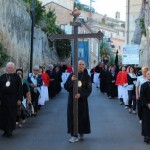Il tutto si è concluso in fraternità, presso il cinquecentesco chiostro in Sant’Agostino, dove le confraternite si sono radunate per un doveroso riposo e per un fraterno e frugale incontro conviviale, grazie all’ospitalità ed alla generosità di Don Giorgio. Senz’altro ai saluti finali ci si è sentiti felici perchè le distanze e i campanilismi finalmente sono stati fugati e una nuova apertura, un nuovo respiro di nuovo ha pervaso i bellissimi ambienti finemente ristrutturati della taverna che fa parte del grande complesso ex-agostiniano, grazie all’attenzione del parroco Don Carini.