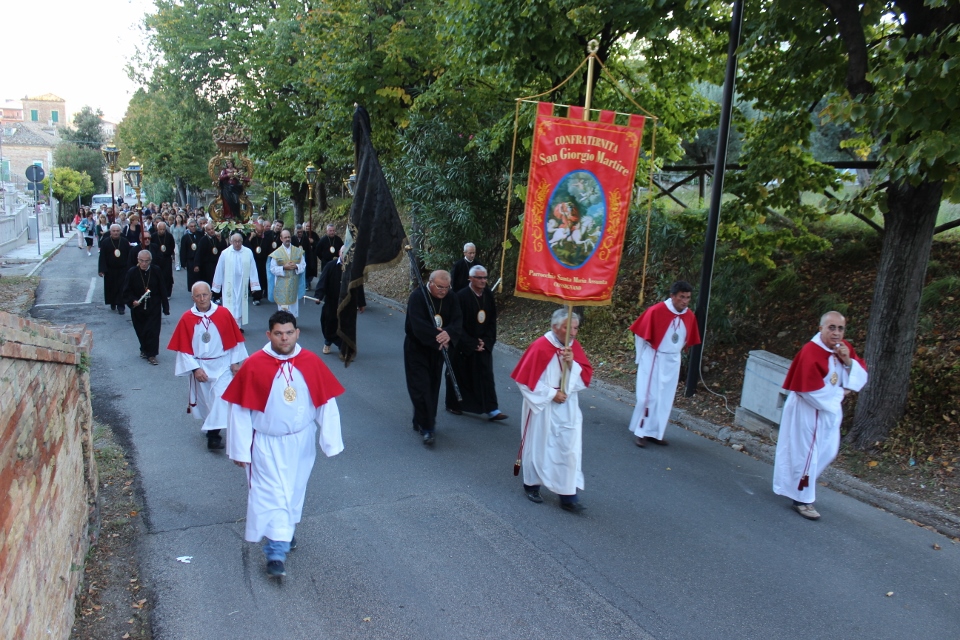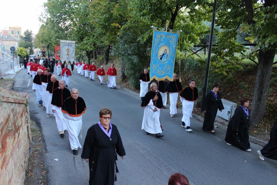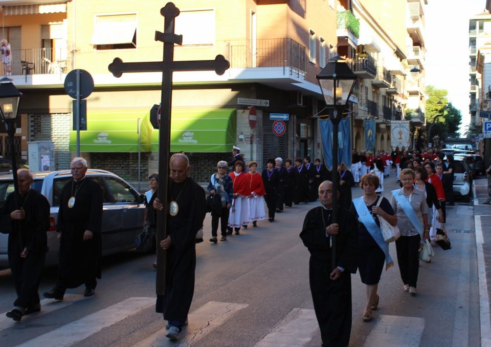 GROTTAMMARE – Domenica 28 settembre si è concluso il “Settenario” di preghiera dedicato alla Madonna Addolorata a Grottammare e la novità di quest’anno è stata che vi hanno partecipato non solo la confraternita dell’Addolorata locale, ma anche le confraternite del Suffragio di Cupra Marittima, di San Giorgio di Cossignano e del Santissimo Sacramento di Monteprandone. Si è trattato, in pratica, di una collaborazione che è di fatto già attiva da qualche tempo, perchè numerosi sono stati gli incontri tra confraternite, i raduni, ciò per cementare lo spirito di gruppo, soprattutto l’unità. La tentazione di questi gruppi, infatti, può – a volte – essere quella di richiudersi su se’ stessi, pertanto, sapendolo, i rappresentanti delle confraternite, stanno facendo di tutto per smentire questa tendenza e per collaborare in univocità e soprattutto in stretta collaborazione con le parrocchie e anche in modo interparrocchiale perchè tutti si fa parte di un’unica Diocesi.