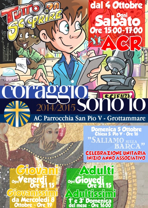 “Tutto da scoprire”: è questo lo slogan che guida il cammino dei bambini e dei ragazzi dell’Acr per l’anno associativo 2014-2015, e li invita a mettersi sui passi di Gesù che gli mostra con il suo volto la loro «fisionomia più profonda e più vera». “Tutto da scoprire” è così l’invito che rivolgiamo a ciascun bambino e ragazzo perché riponga la sua piena fiducia in Colui che gli vuole bene e lo conduce a prendere il largo con la ricchezza di ciò che ciascuno è