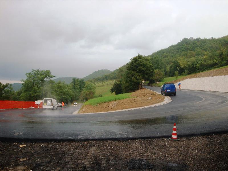 I lavori hanno riguardato sostanzialmente l’allargamento dei due tornanti posti in prossimità del ponte sull’Aso in modo tale da agevolare il traffico veicolare per il trasporto merci che risulta particolarmente intenso sulla S.P. 237 che collega le zone industriali di Comunanza e Amandola con la S.S. n° 4 “Salaria”, importante direttrice di traffico tra il versante adriatico e il versante tirrenico dell’Italia centrale.