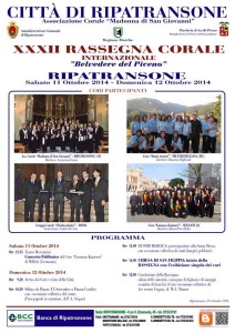 L’Associazione Corale Madonna di San Giovanni di Ripatransone si prepara a vivere un intenso weekend di musica interamente dedicato alla 32a edizione della Rassegna Corale Internazionale “Belvedere del Piceno” in programma a Ripatransone, nei giorni di sabato 11 e domenica 12 Ottobre.