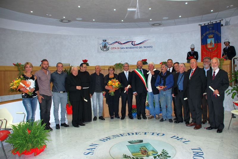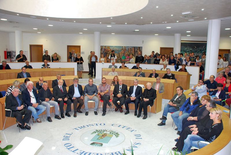 SAN BENEDETTO DEL TRONTO – In una sala consiliare gremita (spiccavano gli studenti del liceo scientifico “Benedetto Rosetti” venuti per applaudire il loro professore di disegno Paolo Annibali), si è svolta stamattina, sabato 11 ottobre, la cerimonia di consegna del Gran Pavese il riconoscimento assegnato, come recita il regolamento, “a personaggi caratteristici locali, istituzioni, associazioni, enti e società nelle varie attività economiche, sociali, assistenziali, culturali, formative, sportive, nonché per elevati atti di coraggio e di abnegazione civica”.
