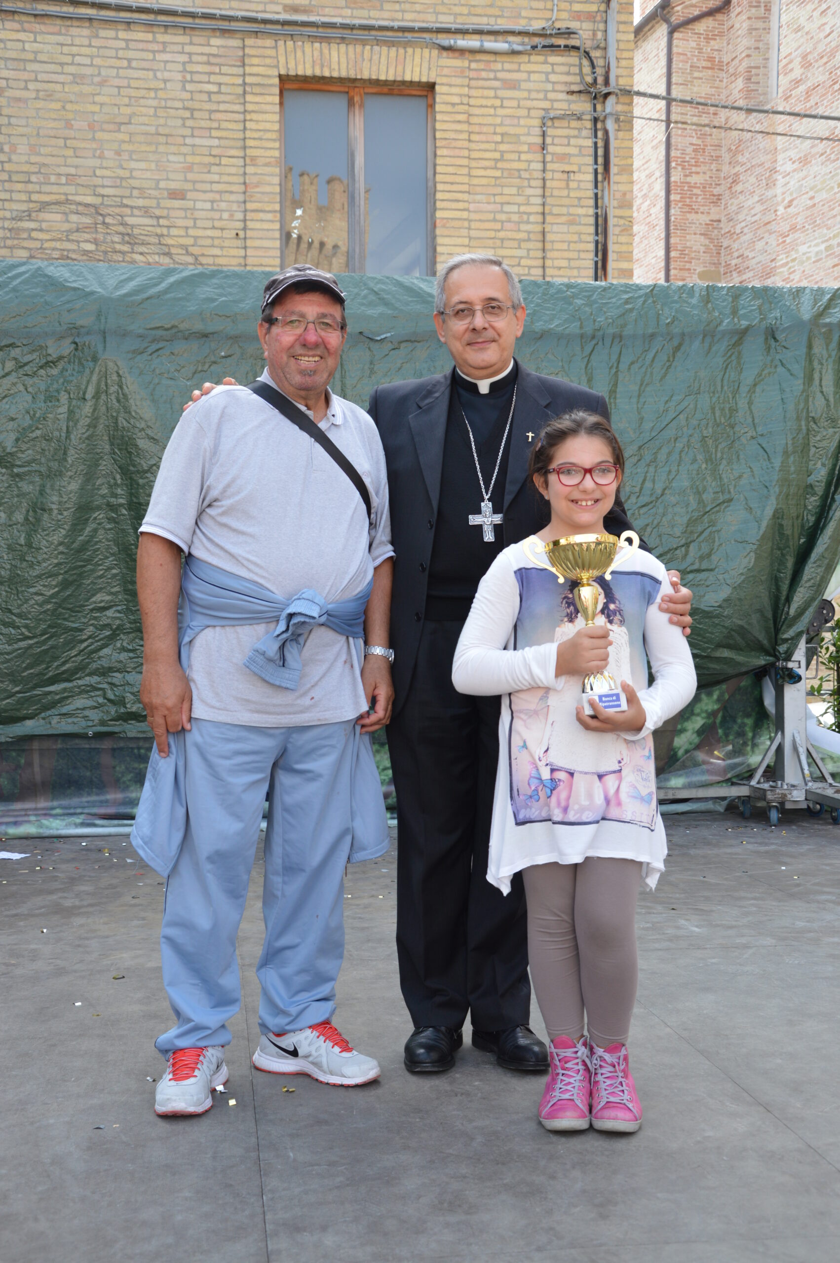 Infine, dopo un momento di animazione e di ballo per tutti i partecipanti, la coppia vincitrice è stata premiata sul palco di Piazza Sacconi da un ospite davvero d’eccezione: il nostro vescovo Carlo!