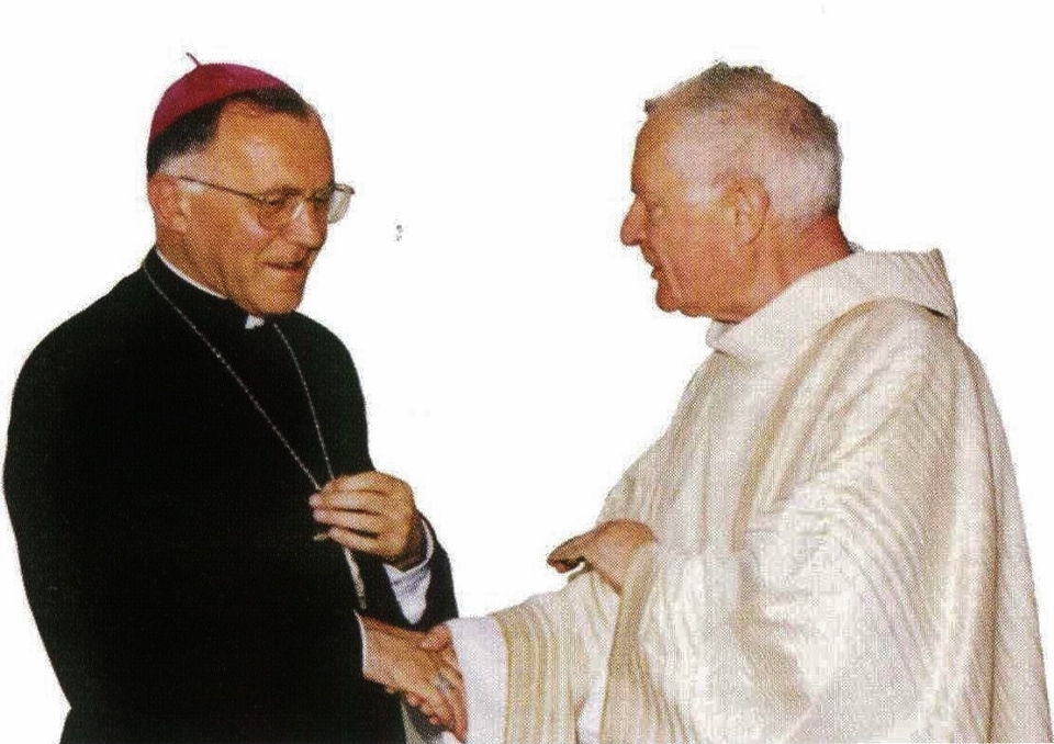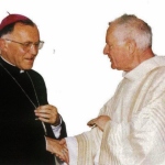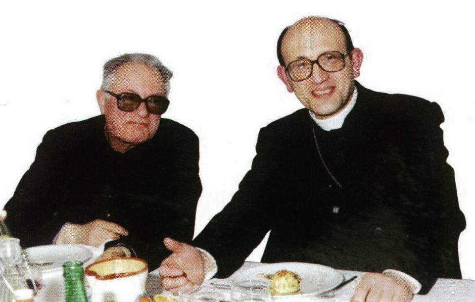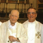 Fin da piccolo venivo portato da mia madre a San Giuseppe e lì ho conosciuto alcuni preti: don Francesco Trevilli, don Natale Buttafoco, don Pasini, don Lorenzo (il cappellano), don Cesare; imparai a seguire la messa a 4 anni anche se non sapevo rispondere bene perché la messa era in latino e mi ci volle un po’ di studio per riuscire a capire tutto. Arrivò il giorno della prima Comunione, il 1 ottobre 1933; in questa occasione incontrai il vescovo mons. Ferri, al quale fui presentato come chierichetto da don Lorenzo: egli mi chiese se volessi fare il sacerdote ma io ancora non lo sapevo, ma avevo qualcosa che vagava per la mia mente. Continuai a frequentare la parrocchia facendo parte dell’Azione Cattolica; partecipai a diversi incontri serali accompagnato da mia madre, grazie ai quali ho cominciato a conoscere sempre più il mondo della chiesa e tutto ciò che girava intorno ad essa. Un giorno però feci quella scelta, la scelta di entrare in seminario: avendo parenti nel nord Italia sono andato spesso a trovarli, a Varese, Zovello, Udine e a Milano ho frequentato un collegio di missionari. Andai allora in seminario a Varallo Sesia (VC), dove restai qualche tempo perché non potevo tornare a casa a causa della guerra. Avevo frequentato solo fino al ginnasio ma decisi di tornare a casa, finita la guerra, anche perché mia madre cominciava a non stare bene (morì poco dopo che io ebbi detto la prima messa); fu un’odissea durata tre giorni di treno. A S. Benedetto il vescovo mons. Ossola mi prese accanto a sé e mi fece entrare nel seminario regionale di Fano. Finiti gli studi tornai a casa, ma mons. Ossola si ammalò e dovette lasciare la sua carica; a fare le sue veci era il vescovo di Fermo mons. Perini: gli chiesi se potessi essere ordinato da lui e divenni sacerdote il 29 giugno del 1951 nella cattedrale di Fermo.