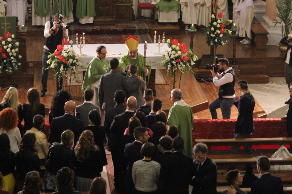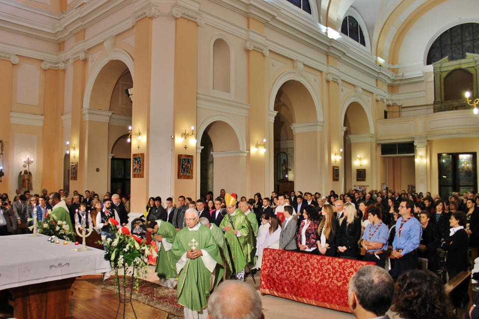 Non si deve approfittare dell’altro, se si è in una posizione di superiorità. Se non accogliamo il Sacramento della Confermazione mettendo in pratica l’Amore di Dio e quindi verso il prossimo, non siamo ancora cristiani. Stiamo rendendo sterile l’Amore di Dio verso di noi. Impariamo anche ad amarci gli uni gli altri con i nostri difetti, cioè così come Dio ci ama, senza giudicarci o escluderci, se non siamo perfetti. Ora la domanda di stasera è: ” Che cosa vogliamo fare di questo Sacramento?’ Ad ascoltare il Vescovo c’erano 31 ragazzi che provenivano da varie realtà parrocchiali, dagli Scout all’Azione Cattolica o che comunque sono stati seguiti dai loro catechisti. Il parroco Mons. Giovanni Flammini ha proposto la continuità in un percorso di dopo Cresima, per non favorire la dispersione di quello, che purtroppo per molti ragazzi, rappresenta l’ultimo Sacramento nel senso che di solito coincide con l’adolescenza e con l’abbandono alla Chiesa. A concelebrare c’erano i vice parroci Don Guido Coccia, Don Eugenio, don Luciano Paci. Una sentita celebrazione arricchita dai canti del coro di San Pio V e dalla presenza di tante persone. Molto emozionati i Neo Cresimati.