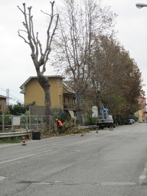 Il platano (Platanus acerifolia) è una essenza arborea ampiamente diffusa sul territorio comunale, in particolare lungo il lato est della ss16 (che da solo conta ben 77 esemplari). Ed è da qui, nel tratto corrispondere a via Lame, che oggi è partito l’intervento di potatura; seguiranno i tratti di via Rosselli e via Montegrappa.