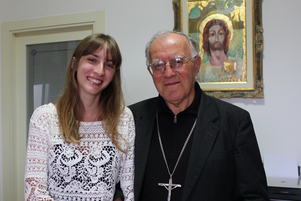 Ci avviciniamo alle scale per congedarci, sulle cui pareti notiamo altre foto con preti ordinati da lui, campiscuola degli anni ’70 e tante altre, prima però ci mette una mano sulla spalla e sussurra: “Trasmettete entusiasmo alle vostre amiche ed amici. Fate vedere che è bello stare insieme, così. Sapete, tanti vostri compagni e compagne vivono un po’ così, sempre alla ricerca di qualcosa, in maniera affannata, ci si butta su strade ed esperienze che ti lasciano dentro tanto vuoto.