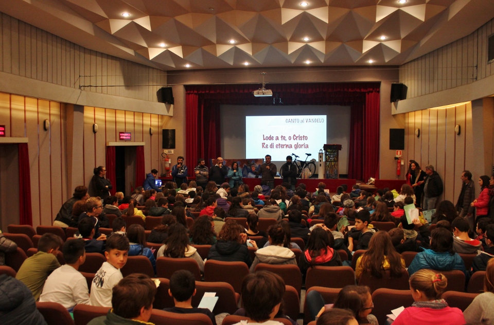 DIOCESI – Si è tenuto Sabato 15 Novembre, presso i locali della parrocchia Cristo Re, l’incontro diocesano ACR per gruppi 12-14 “Coraggio sono io!”, incentrato sull’icona biblica dell’anno (Mc 6,45-52). Il pomeriggio si è aperto nel teatro, dove i ragazzi si sono ritrovati per vivere un momento di animazione mediante ambientazioni, luci, suoni e video, mirato a favorire un’immedesimazione nella narrazione biblica. Ad aiutare la riflessione dei ragazzi ha contribuito anche l’introduzione di Don Gianluca Rosati, assistente diocesano ACR, il quale, dopo la lettura del Vangelo (Gesù cammina sulle acque Vangelo di Marco 6,45-52), ha proposto un interessante paragone con un mezzo di trasporto ben conosciuto anche dai più piccoli: la bicicletta.