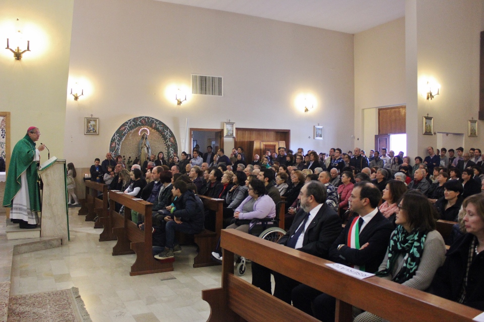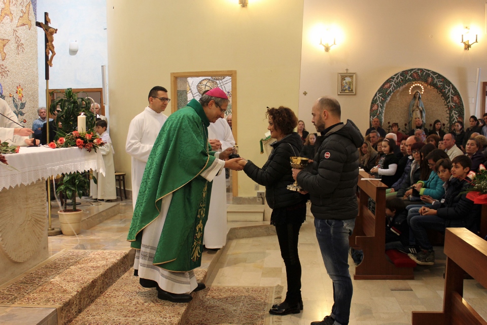 La parrocchia di San Giuseppe ha accolto il vescovo con amore filiale: i bambini, segno di una comunità giovane e attiva, sono subito corsi ad abbracciarlo appena arrivato, e molti erano i ragazzi che hanno partecipato alla S. Messa.