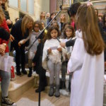 Davanti all’altare della chiesa, durante la messa, i bambini hanno trovato una scaletta con una scatola per attrezzi, pinzette, martelli, lenti di ingrandimento, ecc… oggetti con cui hanno familiarizzato in questo periodo, grazie a “Tutto da scoprire”, il cammino ACR che, attraverso l’ambientazione di un laboratorio, vuole portarli a scoprire che con piccoli passi può prendere vita un grande progetto, imparando a prendere decisioni, a sperimentare e ad esercitarsi, e come un laboratorio viene fornito della strumentazione necessaria per la realizzazione di un progetto, così Dio fornisce l’uomo della strumentazione necessaria per la realizzazione del Suo progetto, cioè i talenti: all’uomo la scelta di scoprirli, misurarsi con essi e farli fruttare, come ha spiegato don Alfredo durante la breve omelia, rifacendosi al vangelo della domenica che parlava proprio dei talenti.