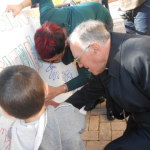 La mattinata si è conclusa con un piccolo aperitivo, offerto dalla parrocchia, presso il Belvedere dove i bambini sono stati invitati a lasciare le impronte della propria mano sullo striscione della festa, impronte alle quali si è aggiunta anche quella del Vescovo emerito Gestori che ha allietato con il proprio saluto la festa.