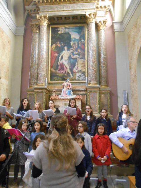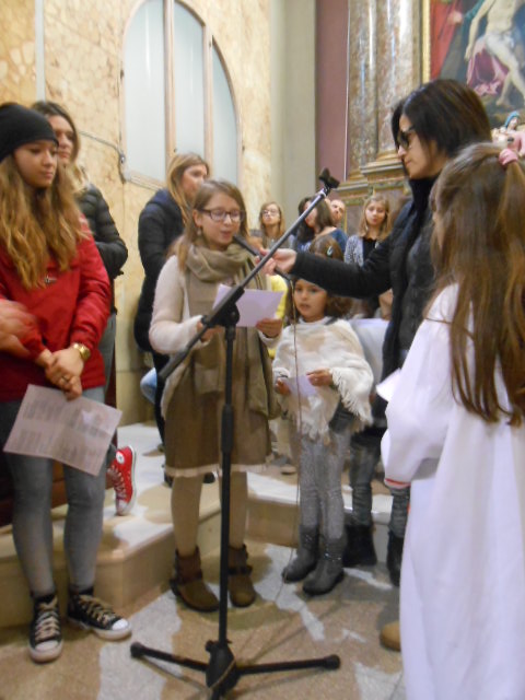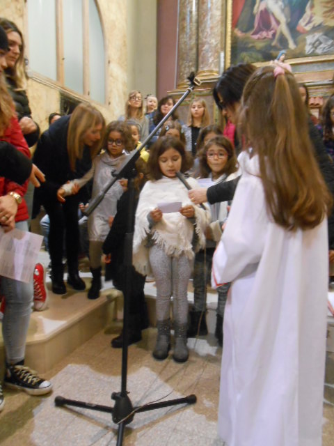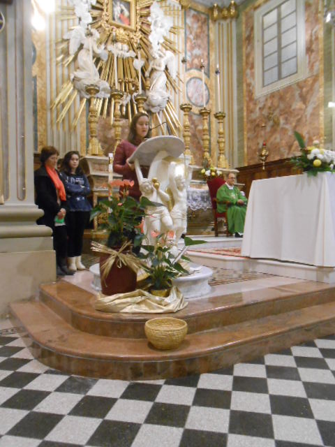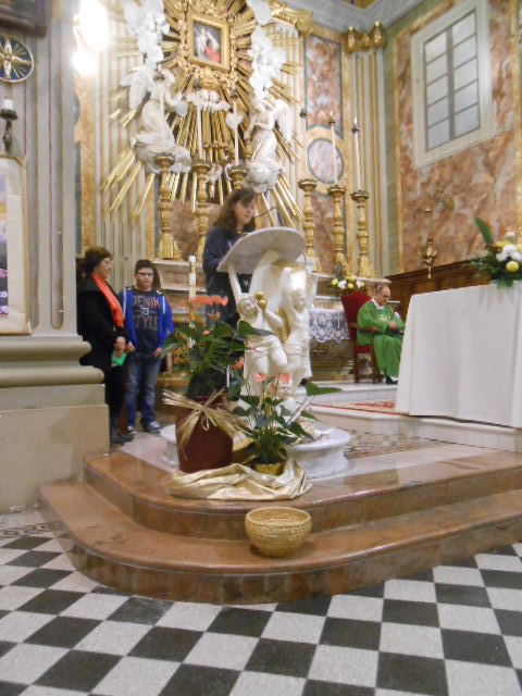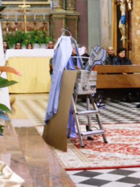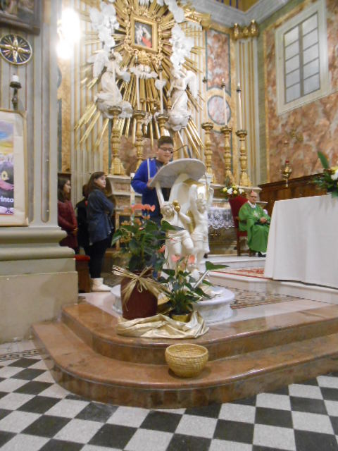 Davanti all’altare della chiesa, durante la messa, i bambini hanno trovato una scaletta con una scatola per attrezzi, pinzette, martelli, lenti di ingrandimento, ecc… oggetti con cui hanno familiarizzato in questo periodo, grazie a “Tutto da scoprire”, il cammino ACR che, attraverso l’ambientazione di un laboratorio, vuole portarli a scoprire che con piccoli passi può prendere vita un grande progetto, imparando a prendere decisioni, a sperimentare e ad esercitarsi, e come un laboratorio viene fornito della strumentazione necessaria per la realizzazione di un progetto, così Dio fornisce l’uomo della strumentazione necessaria per la realizzazione del Suo progetto, cioè i talenti: all’uomo la scelta di scoprirli, misurarsi con essi e farli fruttare, come ha spiegato don Alfredo durante la breve omelia, rifacendosi al vangelo della domenica che parlava proprio dei talenti.