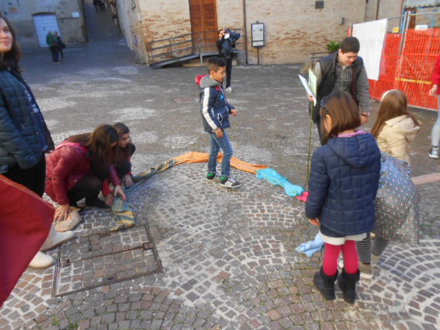 Al termine della celebrazione, le educatrici, coadiuvate dagli animatori e dai cresimandi, hanno condotto i bambini, divisi in cinque squadre, verso le postazioni dei giochi, lungo le vie del centro storico, dove attraverso il divertimento, i bambini hanno avuto modo di sperimentare le proprie abilità nelle prove proposte dagli animatori.