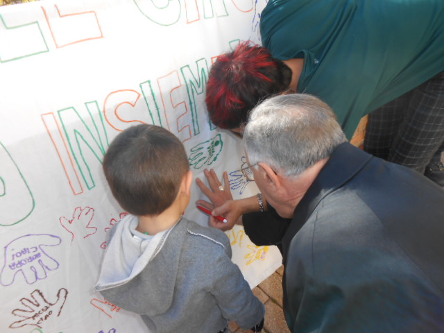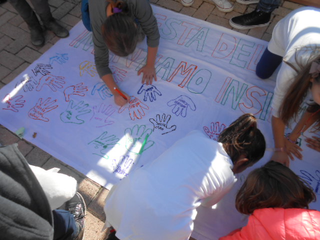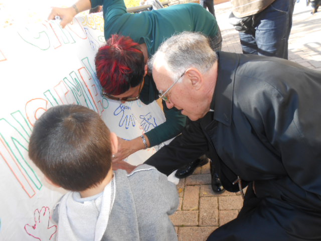 La mattinata si è conclusa con un piccolo aperitivo, offerto dalla parrocchia, presso il Belvedere dove i bambini sono stati invitati a lasciare le impronte della propria mano sullo striscione della festa, impronte alle quali si è aggiunta anche quella del Vescovo emerito Gestori che ha allietato con il proprio saluto la festa.