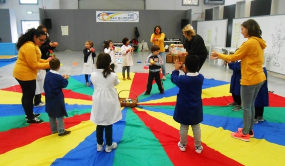 E’ nel cerchio creato tutti insieme intorno al paracadute colorato, quasi che con noi avesse preso vita. In fondo, nel mondo dell’infanzia c’è molto di più che la sola infanzia.
