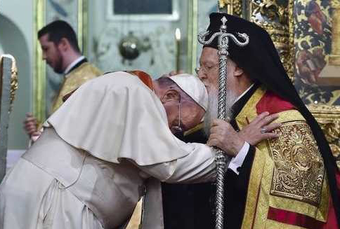 La fraternità con il Patriarca. Con il Patriarca ecumenico Bartolomeo I, il rapporto va oltre il dialogo per sintonizzarsi su un piano di fraternità. È stato il Patriarca ad invitare Papa Francesco a Istanbul per celebrare insieme la festa patronale di Sant’Andrea e dare al mondo, soprattutto alle regioni in guerra del Medio Oriente, la testimonianza di una cristianità unita nella carità. “Vi accogliamo con gioia, onore e riconoscenza – sono le prime parole con cui Bartolomeo ha accolto il Papa al Fanar -, poiché avete avuto la bontà di portare i vostri passi dalla Antica alla Nuova Roma, gettando un ponte simbolico, con questo vostro gesto, tra l’Occidente e l’Oriente”. E il Papa gli risponde: “Andrea e Pietro hanno ascoltato questa promessa, hanno ricevuto questo dono. Erano fratelli di sangue, ma l’incontro con Cristo li ha trasformati in fratelli nella fede e nella carità. E in questa sera gioiosa, in questa preghiera vorrei dire soprattutto: fratelli nella speranza”. Poi terminato il discorso, il Papa ha messo da parte i fogli, ha guardato negli occhi il Patriarca e gli ha detto: “Vi chiedo di benedire me e la Chiesa di Roma”. E così si è avvicinato a Bartolomeo; si è inchinato poggiando il capo sul suo petto e il Patriarca lo ha baciato sulla testa. Un gesto semplice, quasi familiare, come è l’amore tra i fratelli. Amore che unisce e abbatte in un attimo secoli di divisioni e di muri.