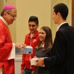 Io vi accompagno con la mia preghiera perché impariate dal centurione ad essere attenti con i più deboli, perché impariate ad andare da Dio come il centurione è andato da Gesù, perché sappiate andare a chiedere che il Signore vi aiuti a vivere insieme con Lui. E questo è esattamente la completezza della vita.