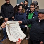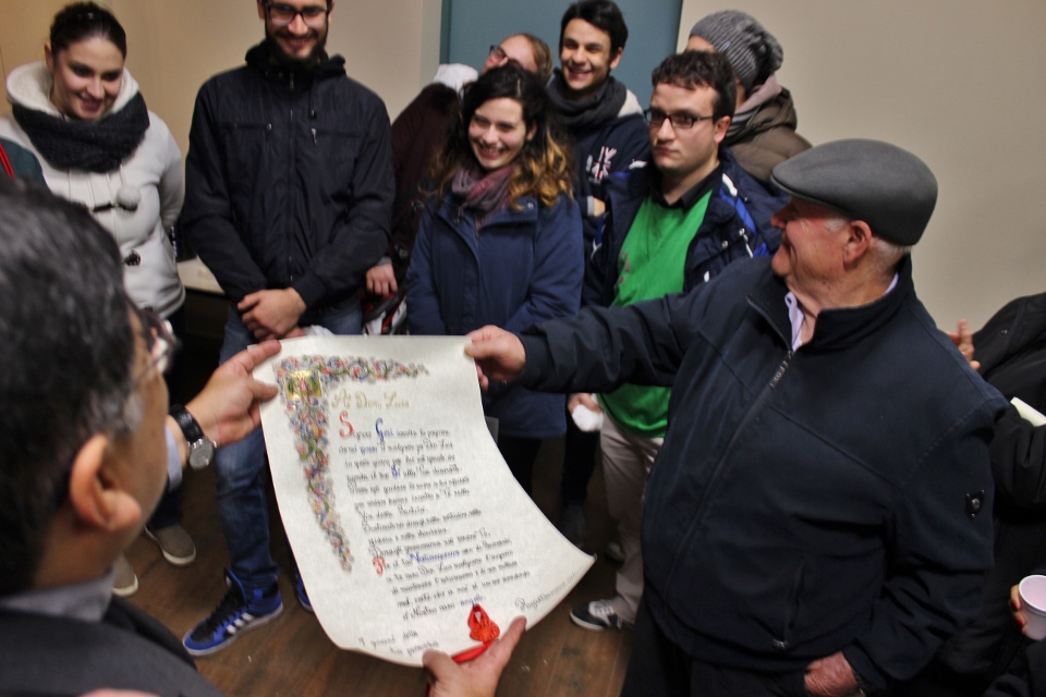 A dire il vero, poi, la nostra Comunità ha preparato per te anche un altro regalo ben più “terreno” di questa pergamena ma avremo tempo più tardi, durante la festa che seguirà questa celebrazione, per consegnartelo.