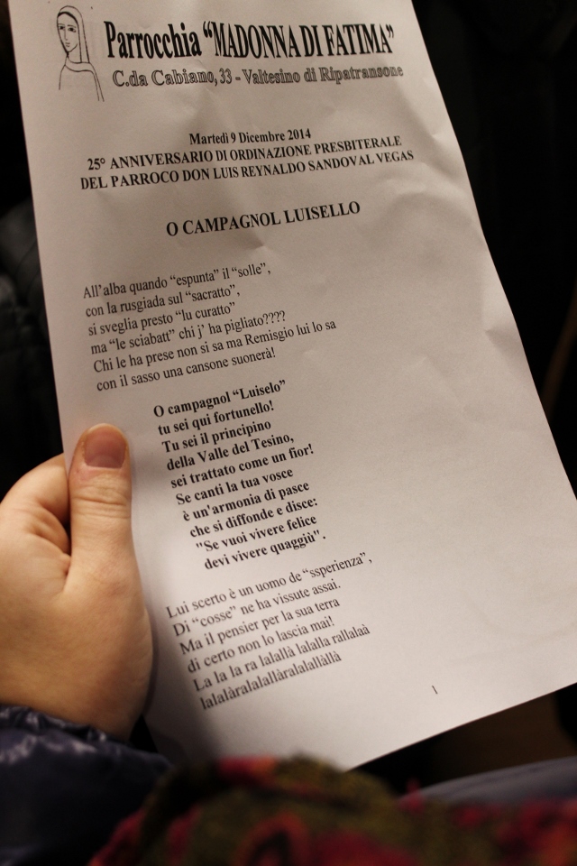 RIPATRANSONE – Martedì 9 dicembre presso la parrocchia Madonna di Fatima di Ripatransone si tenuta la festa per i 25 anni di sacerdozio di Don Luis Sandoval.