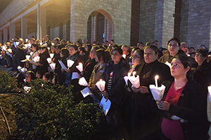 Una scia di luce ha attraversato Erbil. La città del Kurdistan iracheno diventata in questi mesi luogo di approdo per migliaia di rifugiati cristiani che qui hanno trovato asilo e protezione, in fuga dall’offensiva dei ribelli islamici. Sabato scorso in migliaia hanno sfilato tenendo in mano lumi accesi e rischiarando per una notte, con la luce della pace, l’oscurità in cui è avvolta questa regione del mondo. La processione si è svolta per le vie di Ankawa, sobborgo a maggioranza cristiana della città di Erbil. È iniziata alla cattedrale “Mar Youssef” di Erbil e al suono dei canti mariani e con in testa la statua di Maria, si è conclusa in piazza della Vergine. È stato questo momento di lacrime e preghiere, l’appuntamento più commovente del “pellegrinaggio” che un centinaio di fedeli della diocesi francese di Lione ha svolto il 6 e il 7 dicembre a Erbil.